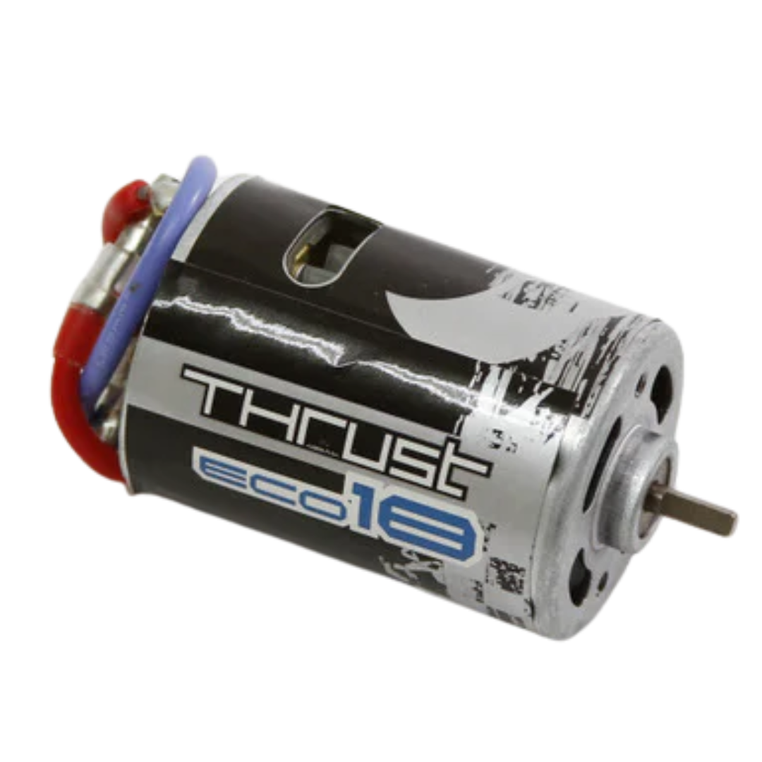 The Absima Thrust Eco 18T motor is a dependable brushed motor designed for 1/10 scale RC vehicles. With efficient power delivery and 28,000 rpm at 7.2 volts, it offers a solid balance of speed and control for beginner to intermediate drivers.