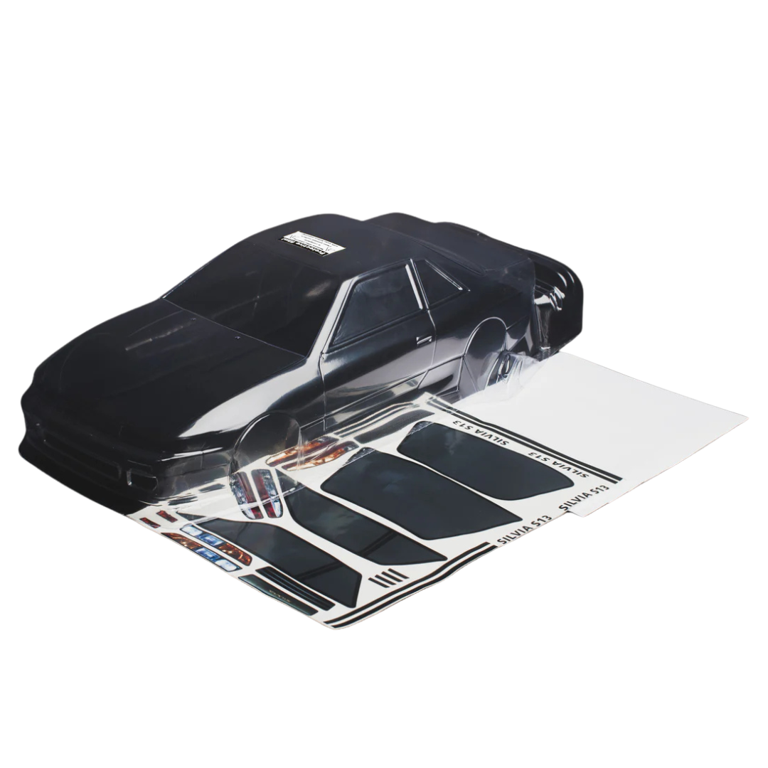 Realistic APlastics S13 Silvia V1 body shell designed for 1/10 scale RC drift and touring chassis. Crafted from durable Lexan, it offers detailed styling, optional customisation and a clear finish for personalised paintwork.