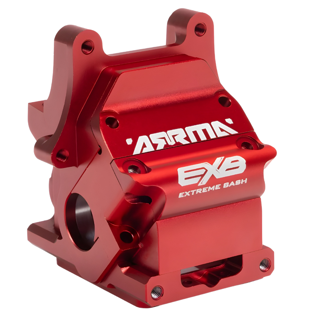 This Aluminium Gearbox Set is a high-strength upgrade for the Arrma 1/5 Kraton 6S BLX 4X4 EXB Speed Monster Truck, enhancing durability with precision machining and a red anodised finish.