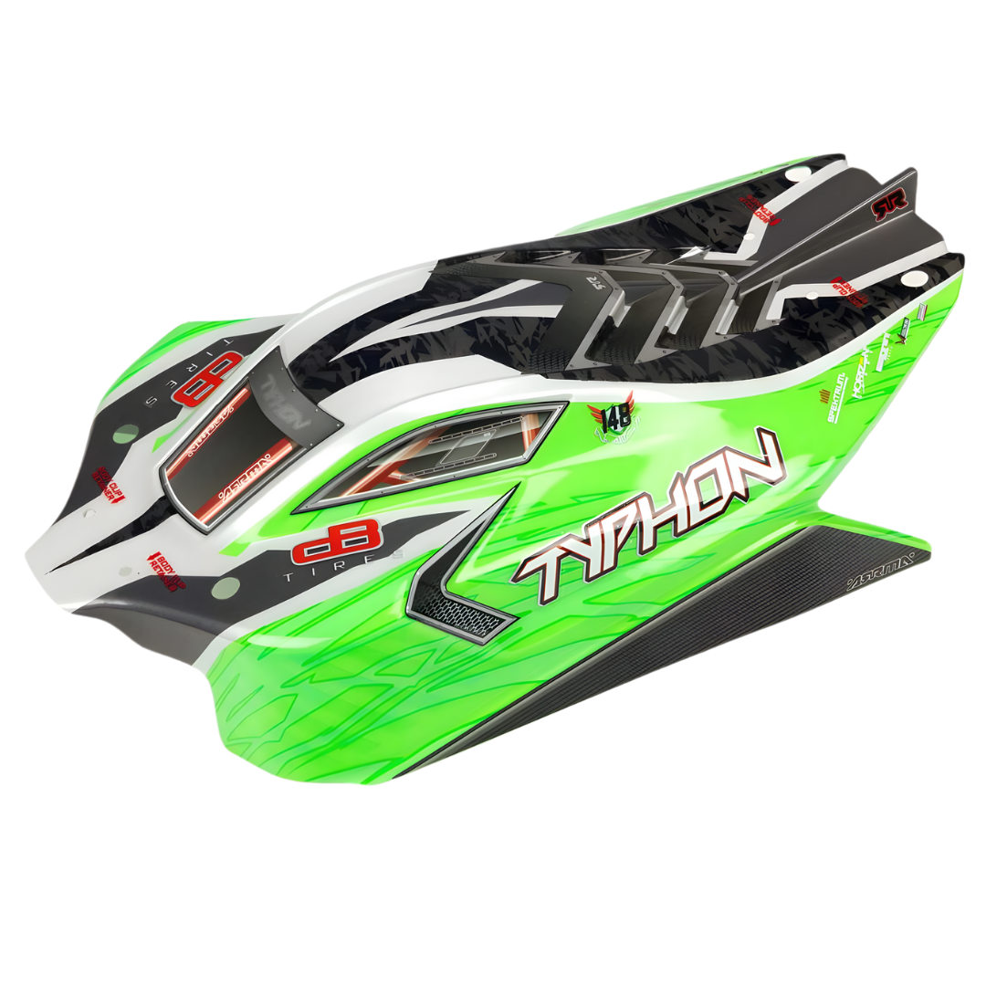 This pre-painted and pre-trimmed green body shell is a direct replacement for the ARRMA TYPHON 4X4 BLX 1/8 buggy. Featuring aggressive styling and aerodynamic design, it’s ready to mount with pre-applied decals and factory-drilled holes for easy installation.