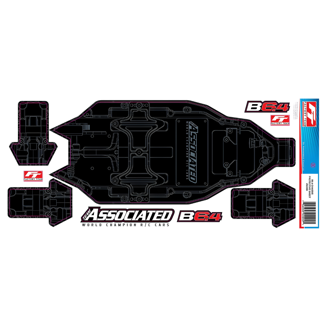 Protect the underside of your RC10B6.4 Factory Team +3mm chassis with this pre-printed protective sheet from Team Associated. Designed for a precise fit, it helps reduce wear from abrasive track surfaces while maintaining a clean Factory Team look.