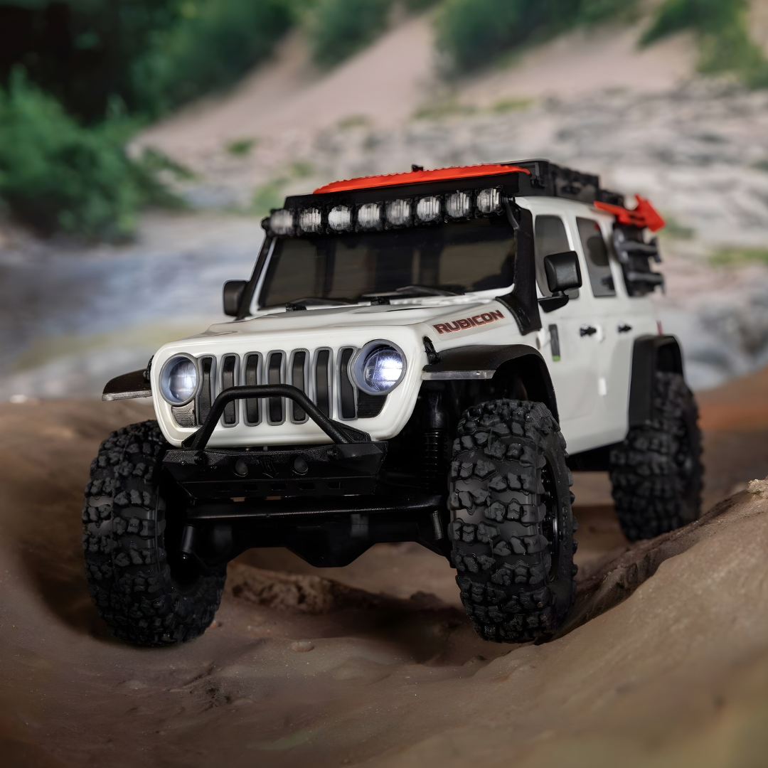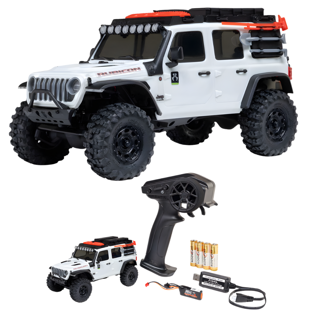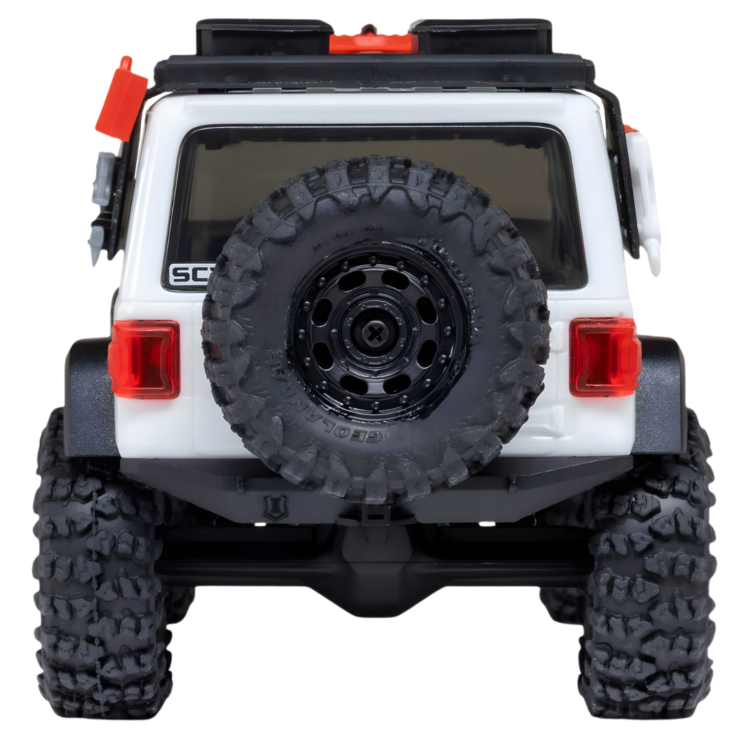 The Axial SCX30 Jeep Wrangler JLU RTR in white combines sub-micro scale with high-performance crawling features. Built for indoor and outdoor adventures, this 1:30 scale crawler includes a detailed hard body, powerful electronics, and officially licensed components for maximum realism and capability—right out of the box.