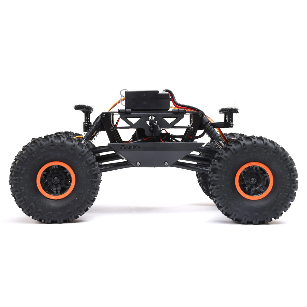 Mounted at a lay-back angle in the side plate chassis are longer, 51mm Coilover shocks which are a first for the AX24 platform. This allows for the increased articulation to ensure your wheels always maintain contact with the ground and your traction is maximized on uneven surfaces. Using a 4-link design the suspension geometry works in conjunction with the side plate chassis to reduce torque twist and axle steer while increasing articulation. There is a worm screw and worm gear set up in the front and rear axle housings to get power to the axles and create higher ground clearance on your Axial AX24 XC-1 Rock Crawler RTR. The combination of these components allows for dependable power delivery, and easier handling and enhances your ability to tackle rough terrain.