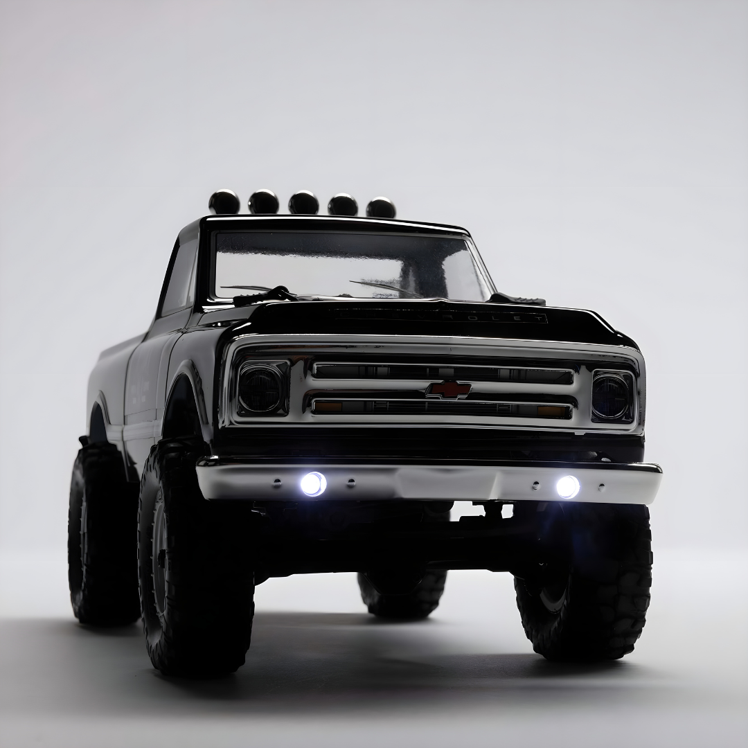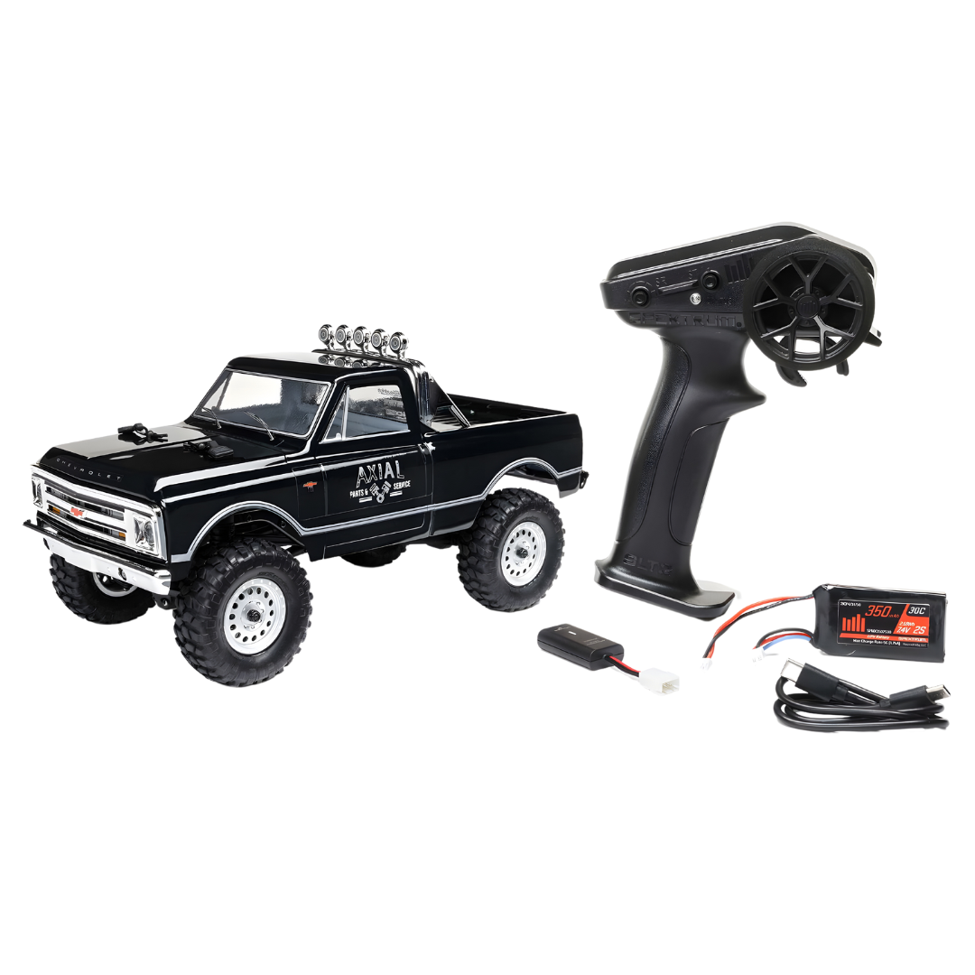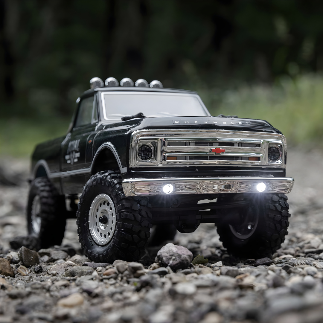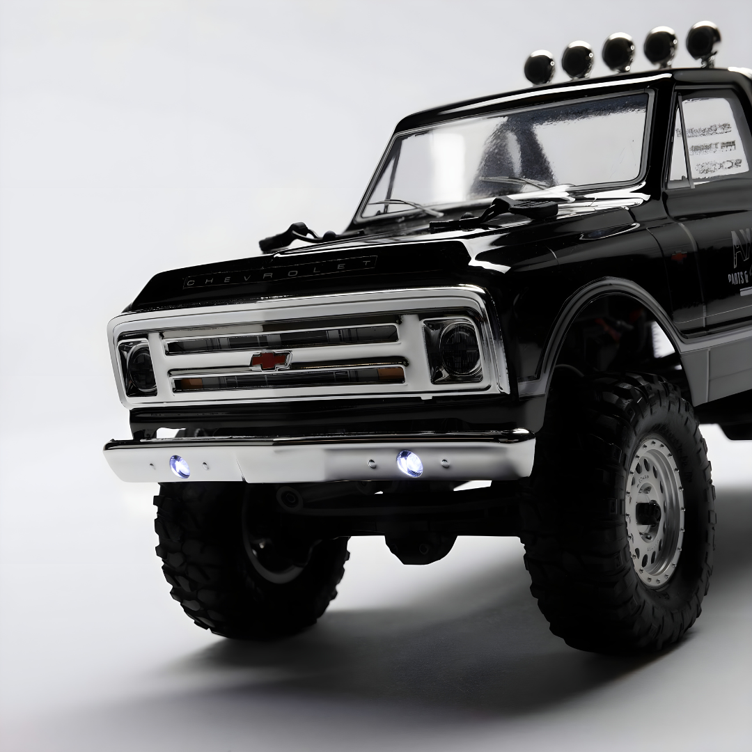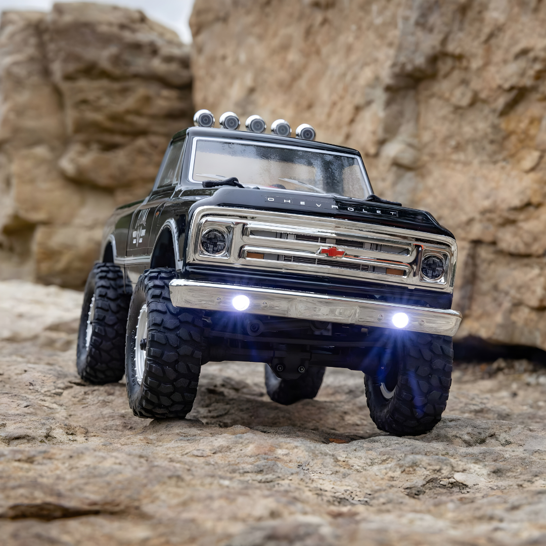 The ‘67 Chevy is an icon in the truck world, and it is now available in the Axial SCX24 micro scale range. The classic 1967 Chevrolet truck body is fully assembled and comes with a USB charger, LiPo battery and AA batteries for your transmitter so you are ready to run as soon as you take it out of the box.