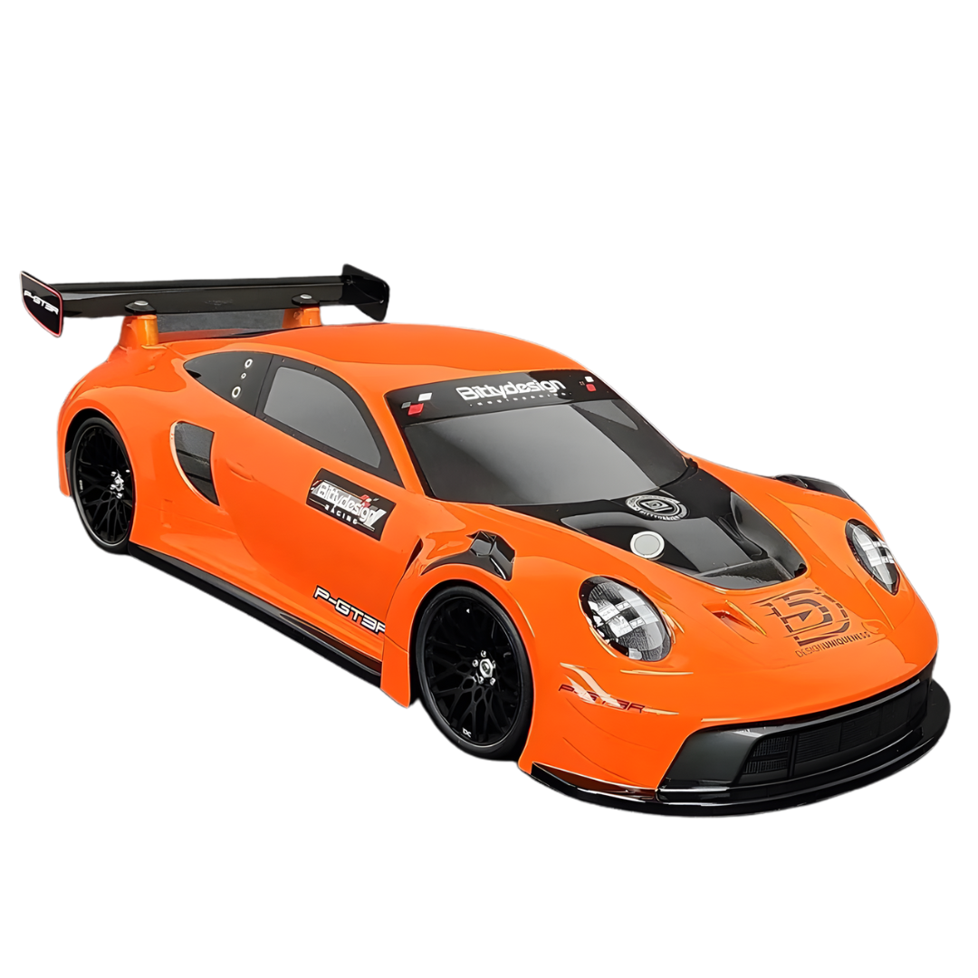 The Bittydesign P-GT3R is a high-performance 1/10 scale GT body designed with racing precision and authentic aesthetics. Crafted from genuine Lexan® polycarbonate, this lightweight body delivers exceptional aerodynamics, structural integrity, and a realistic GT3-inspired look—perfect for both competition and display.
