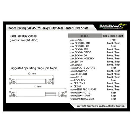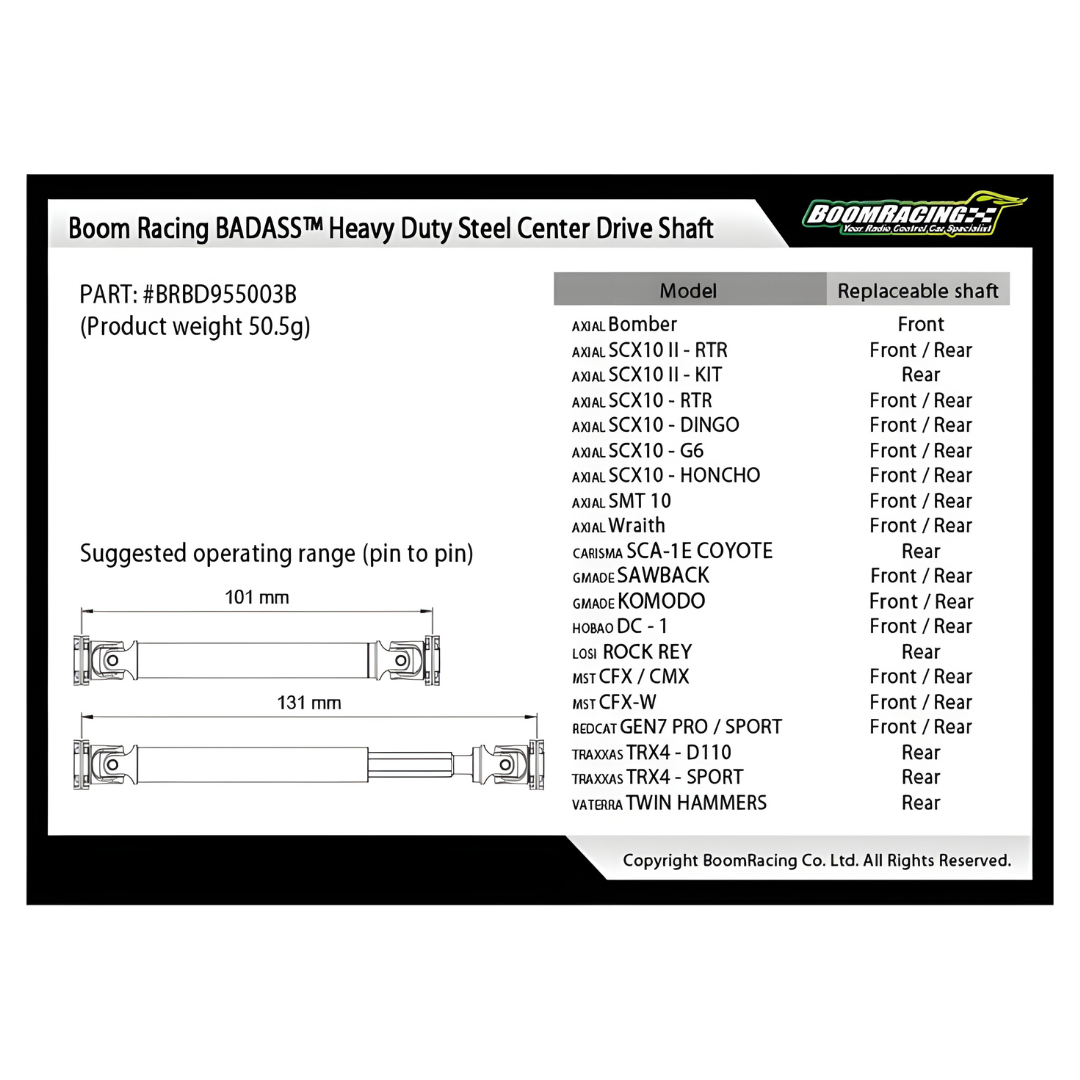 Boom Racing Badass Axial Wraith SCX10 Centre Drive Shaft Set BRBD955003-AX1