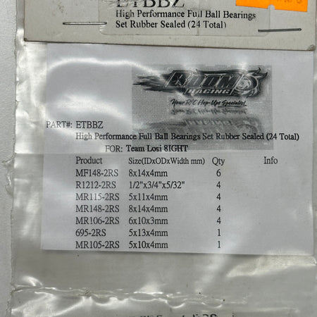 Boom Racing ETBBZ Losi 8ight Bearings Set [Scratch & Dent]
