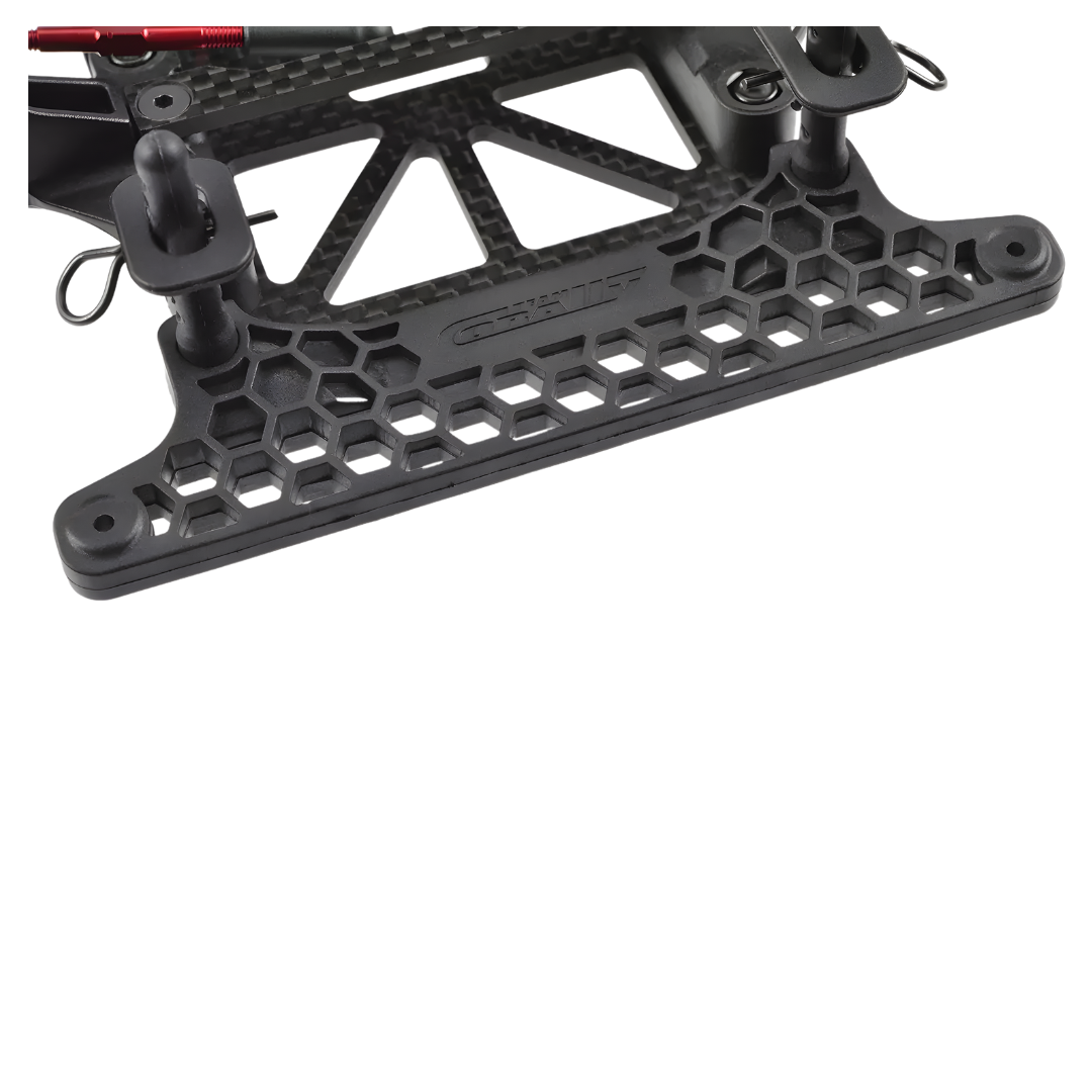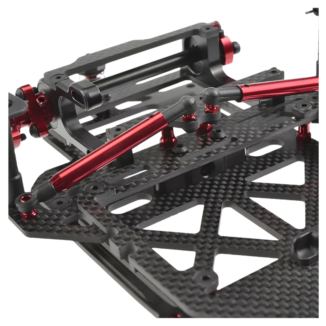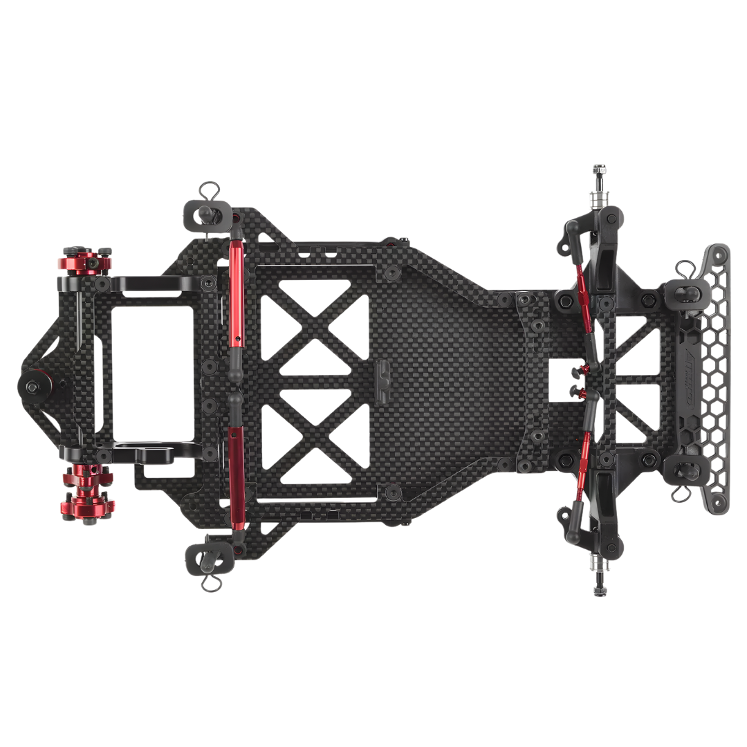 - Carbon fibre chassis plate with precision-machined cutouts for balanced flex and rigidity