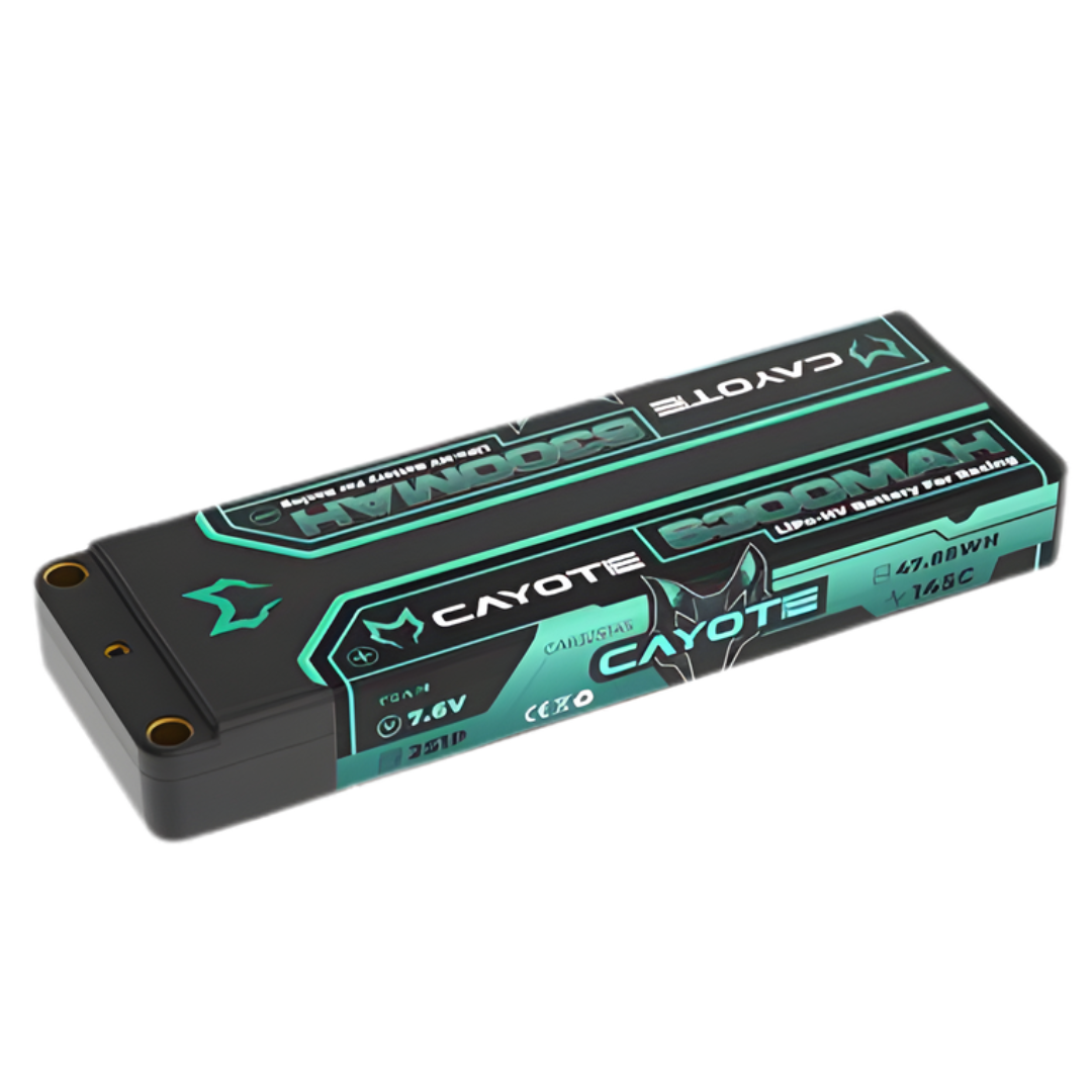 The Cayote 6300mAh 2S LiPo battery delivers ultra-high 145C discharge performance, making it ideal for competitive RC racing. Designed with precision and durability in mind, it offers reliable power output for demanding track conditions.