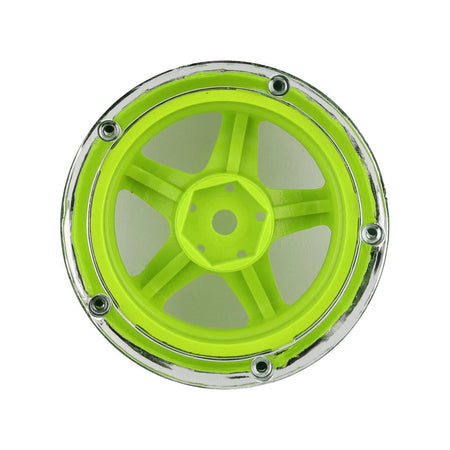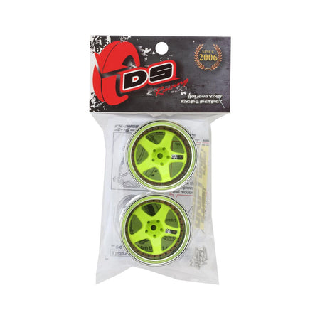 - DS Racing (#DE-026) Drift Element 5 Spoke Wheel Set - Flu Lime/Chrome Lip w/ Black Rivets (2 pcs)