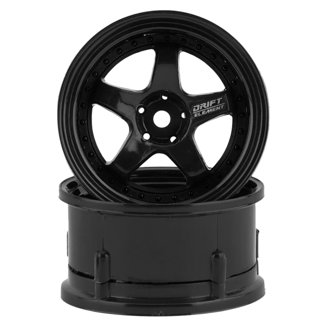 DS Racing Triple Black 1/10 Drift Element 5-Spoke Drift Wheels 2pcs DE-005