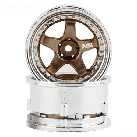 DS Racing Bronze/Chrome/Gold 1/10 Drift Element 5-Spoke Drift Wheels 2pcs DE-022