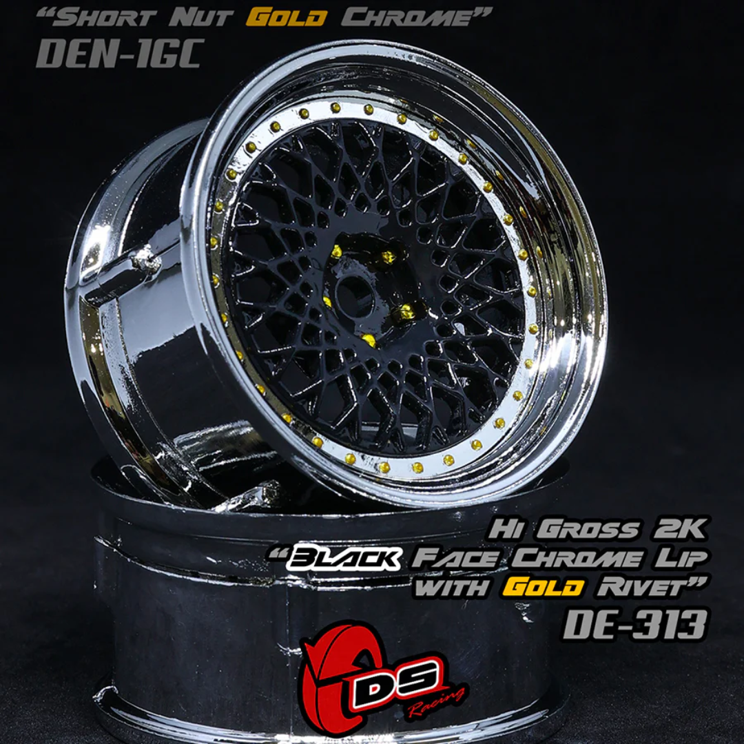 DS Racing DE Mesh 1/10 Drift Wheels w/ Gold Rivets (Black/Chrome) 2pc DE-313