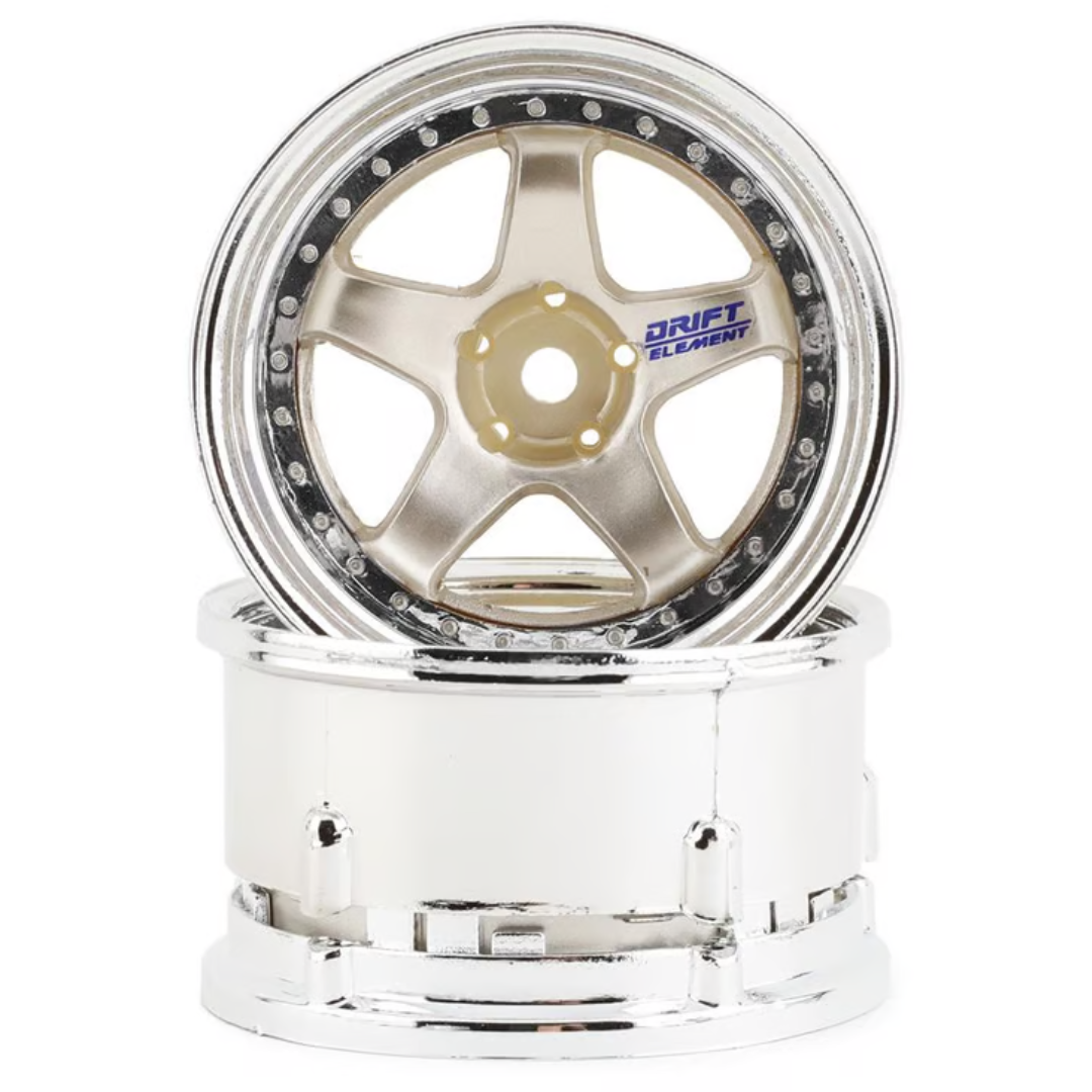 DS Racing Gold/Chrome 1/10 Drift Element 5-Spoke Drift Wheels 2pcs DE-015