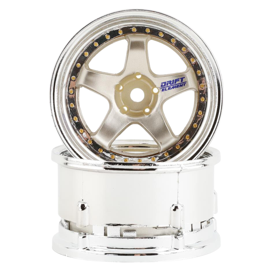 DS Racing Light Gold/Chrome 1/10 Drift Element 5-Spoke Drift Wheels 2pcs DE-016
