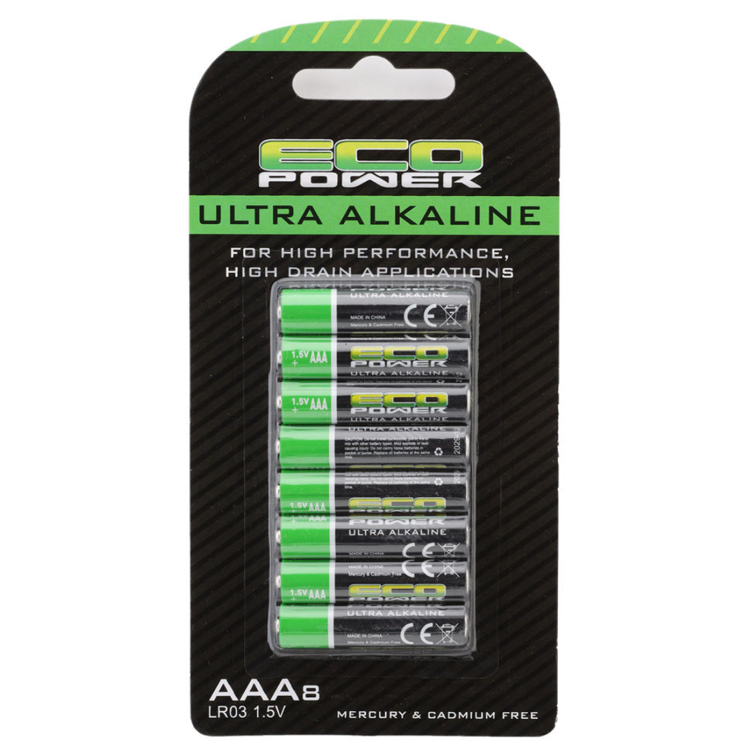 - 8x EcoPower Ultra Alkaline AAA Batteries