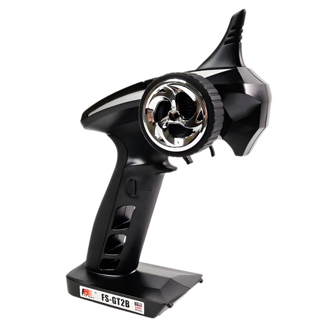 The FlySky GT2B features 3 channel operation, interchangeable hand grips, adjustable steering dual-rate, servo reversing and a rechargeable li-ion battery which eliminates the need for buying expensive AA batteries. The li-ion battery also makes this transmitter much lighter, which gives the user a great feel during use. No more lugging around a heavy transmitter holding 8 x AA batteries!