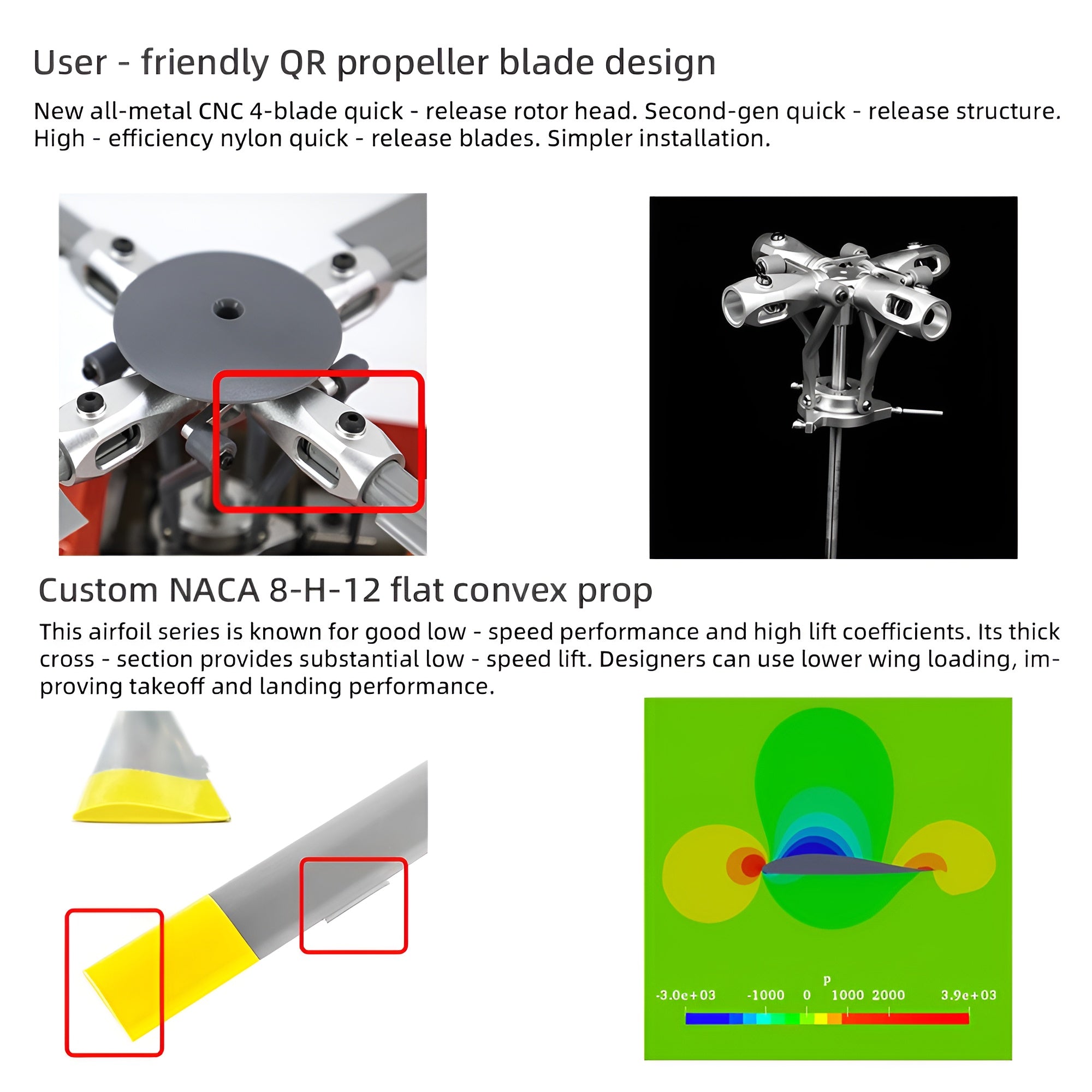- Four-blade rotor head: Realistic flight characteristics and enhanced control