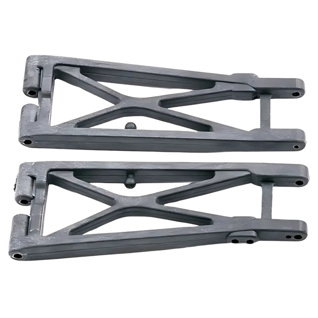 The Factory Team 7449 carbon rear suspension arms offer enhanced strength and rigidity for Team Associated SC10 and RC10T4 series vehicles. Made from carbon composite material, they deliver improved durability and handling for competitive off-road performance.