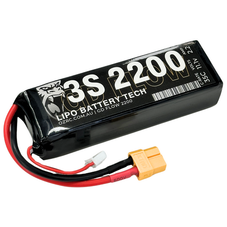 The GD Flow 2200mAh 3S LiPo battery delivers reliable and powerful energy for RC vehicles, drones, and other high-performance electronics. With a 35C discharge rate and XT60 connector, it ensures efficient power delivery and secure connectivity.
