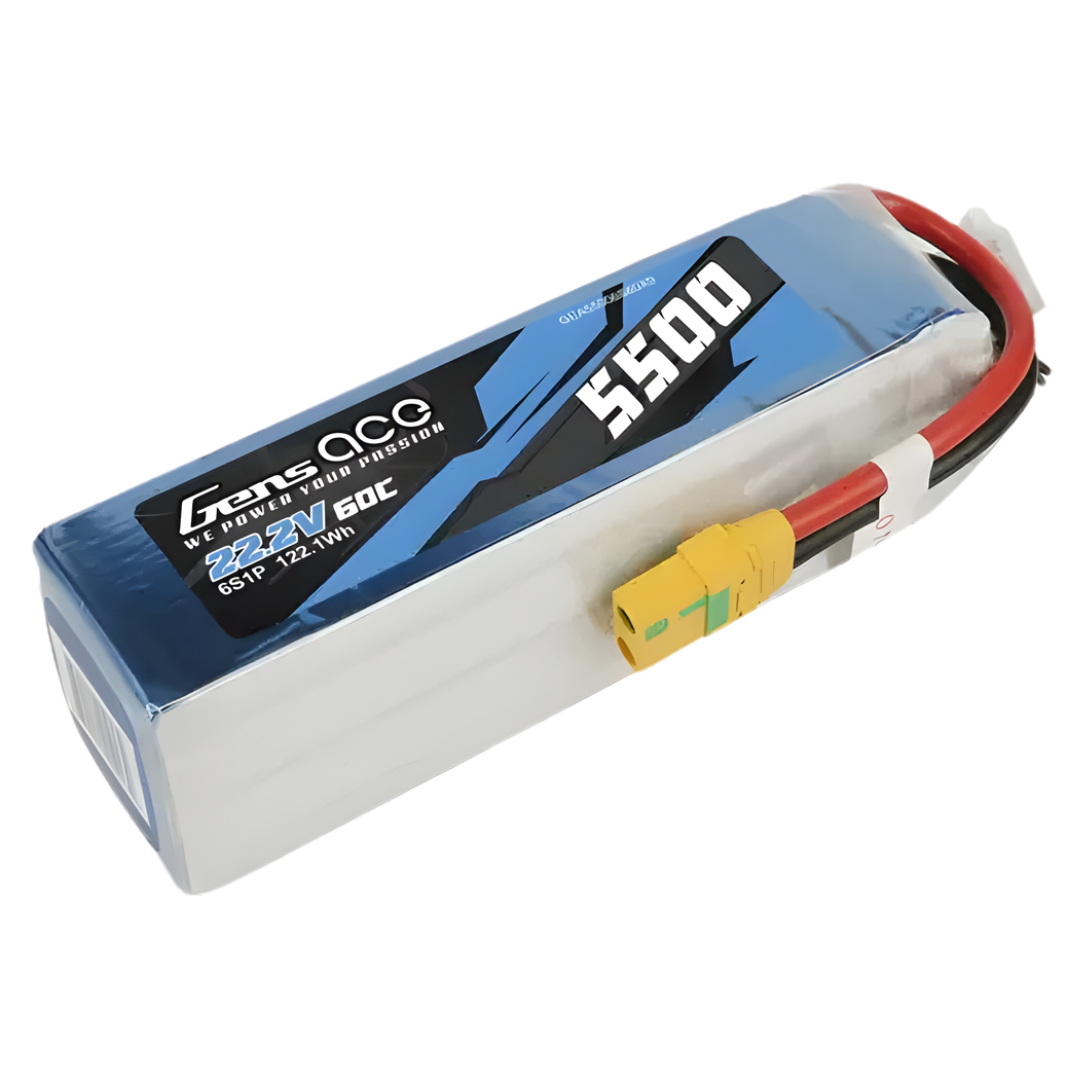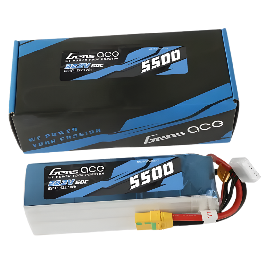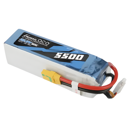 - Gens Ace 6S 5500mAh 22.2V 60C soft case LiPo battery with XT90-S connector