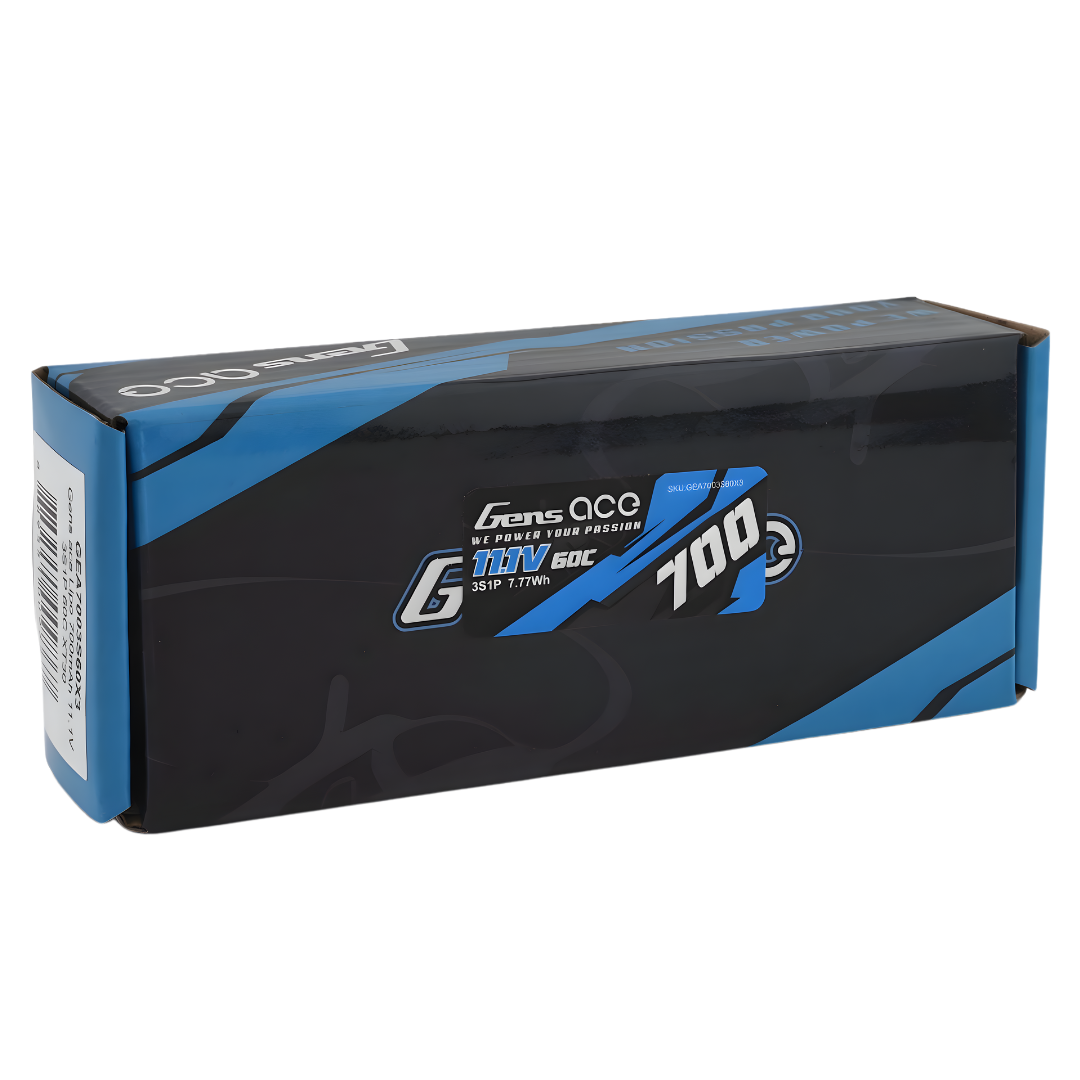 The Gens Ace 3S 700mAh 11.1V 60C LiPo Battery is a compact and high-performance power source ideal for mini RC aircraft, drones, and lightweight vehicles. With its soft case design and XT30 connector, it offers reliable power and efficient performance in a lightweight package.