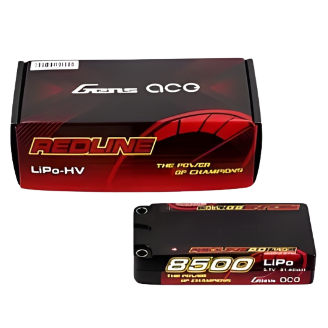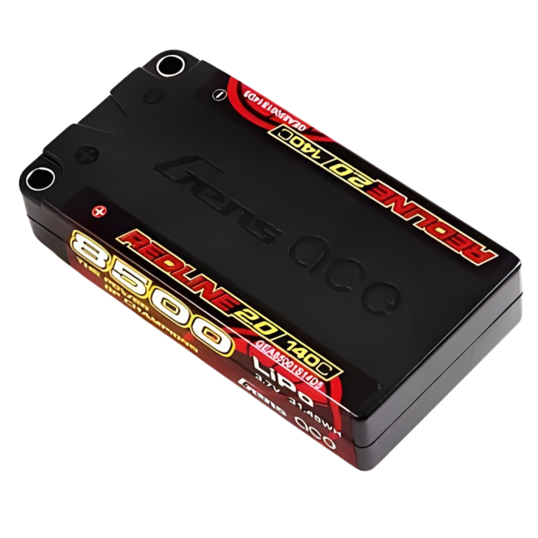 The Gens Ace Redline 2.0 1S LiPo battery is engineered for high-performance racing applications requiring extreme current delivery and consistency. With an 8500mAh capacity and 140C discharge rate, this hardcase pack provides reliable power and durability for competitive RC use.
