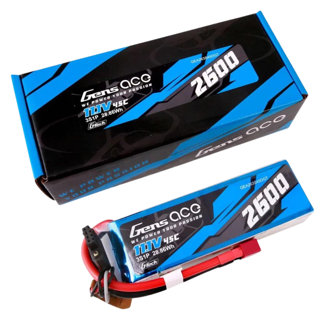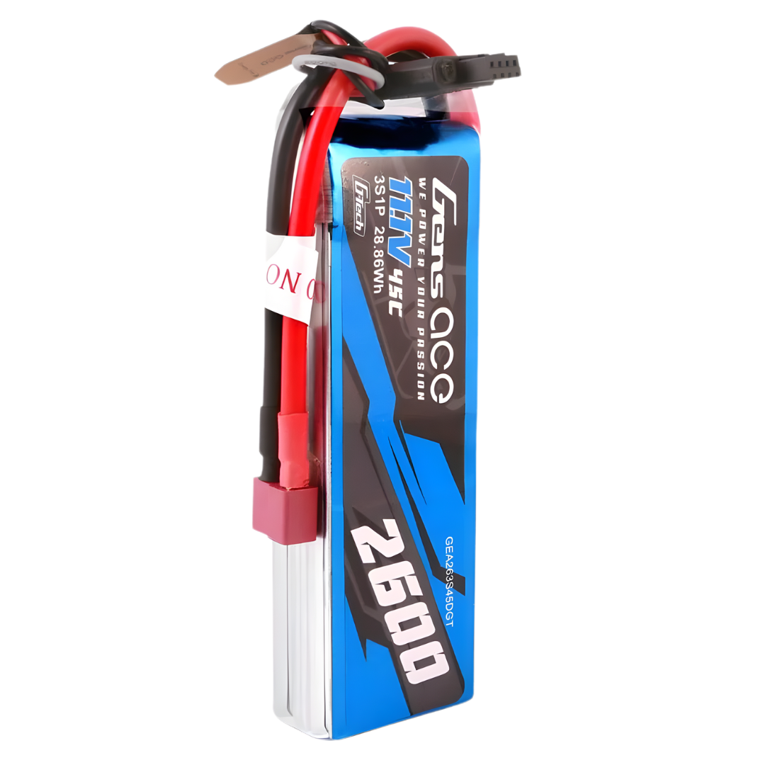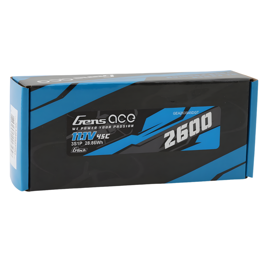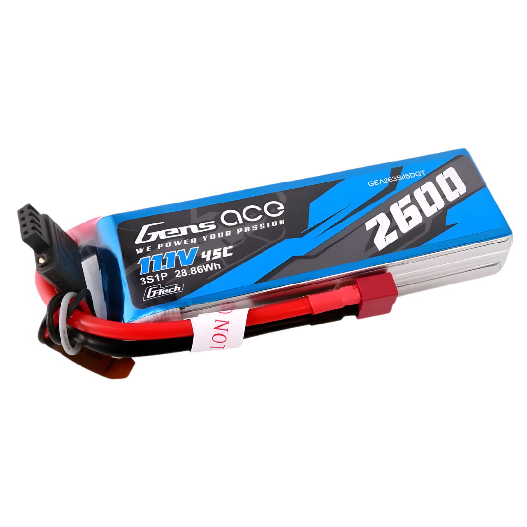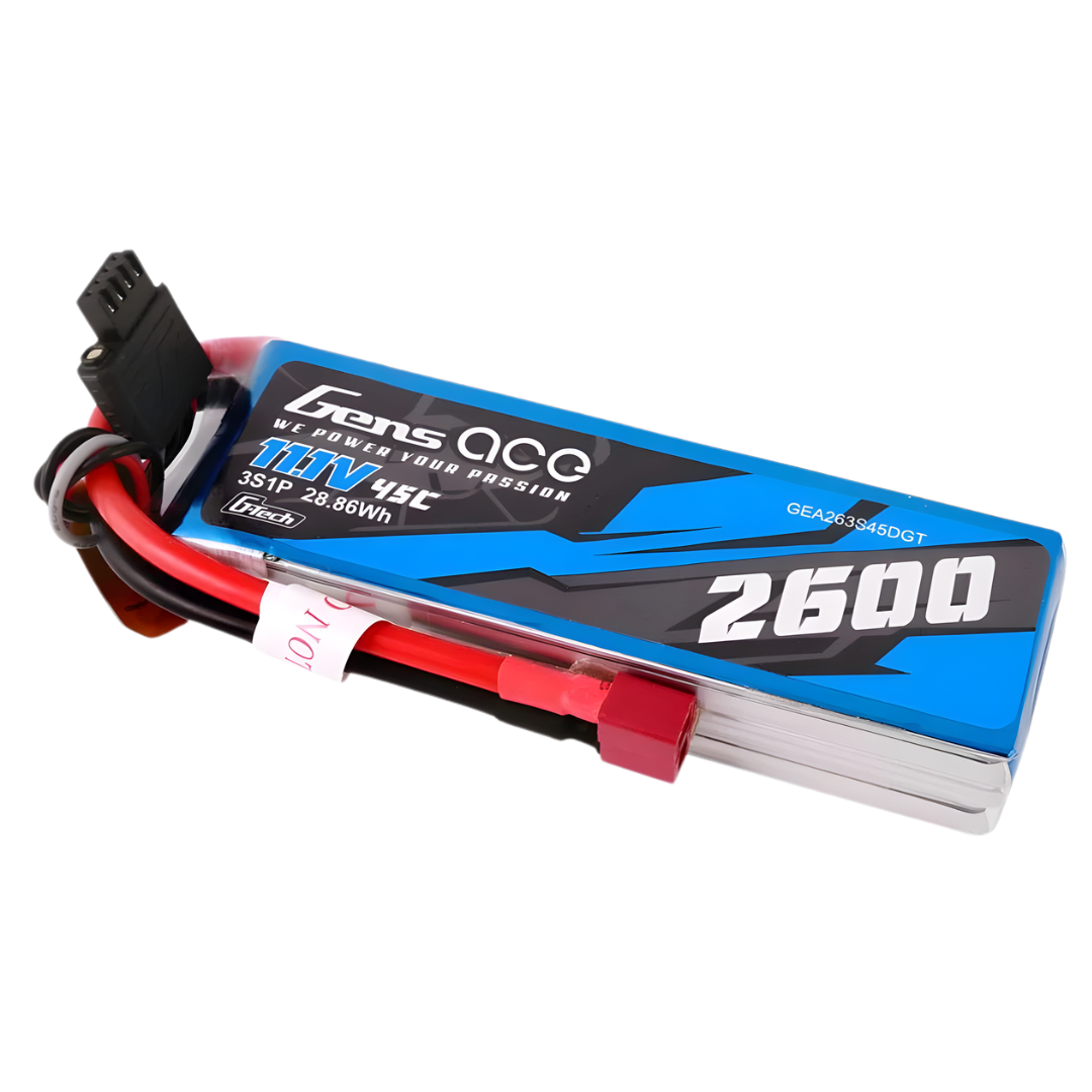 - Gens Ace G-Tech 3S 2600mAh 11.1V 45C soft pack LiPo battery with Deans connector