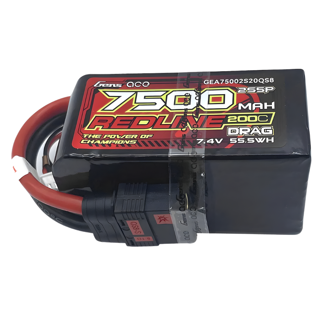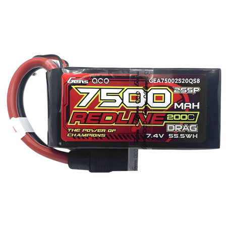 Gens Ace Redline 7500mAh 7.6V 2S Drag Race LiPo Battery 200C QS8 Plug GEA75002S20QS8