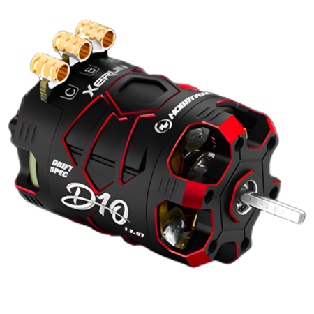 The Hobbywing Xerun D10 13.5T Red is a precision-engineered sensored brushless motor designed specifically for 1/10 scale drift cars. Featuring a drift-optimised stator, quick-swap banana plugs, and lightweight construction, it delivers smooth, responsive performance with excellent linearity and cooling.