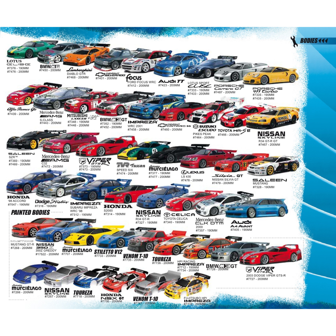 - Pre-drilled body post holes suit HPI and Hot Bodies chassis