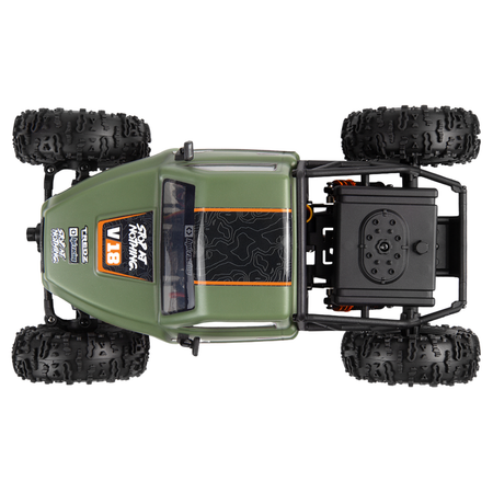 - Fully assembled 1/18 scale electric 4WD competition crawler