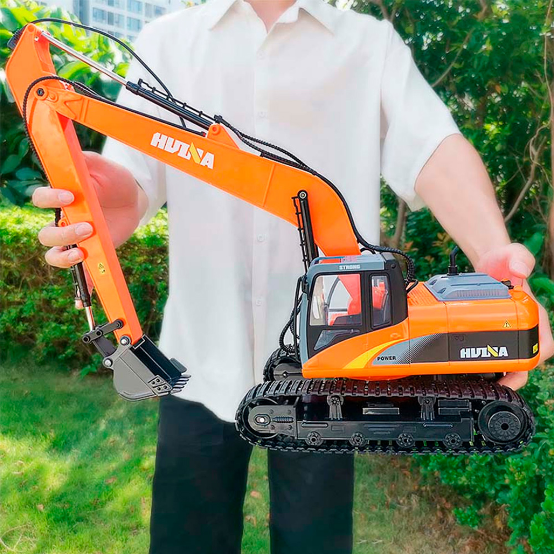 The Huina 1/14 Long Boom Excavator delivers precision control and realistic construction action with its 15-channel system and bold red finish. Featuring a durable tracked chassis and powerful digging functions, this RC model is perfect for hobbyists seeking scale realism and extended playtime.
