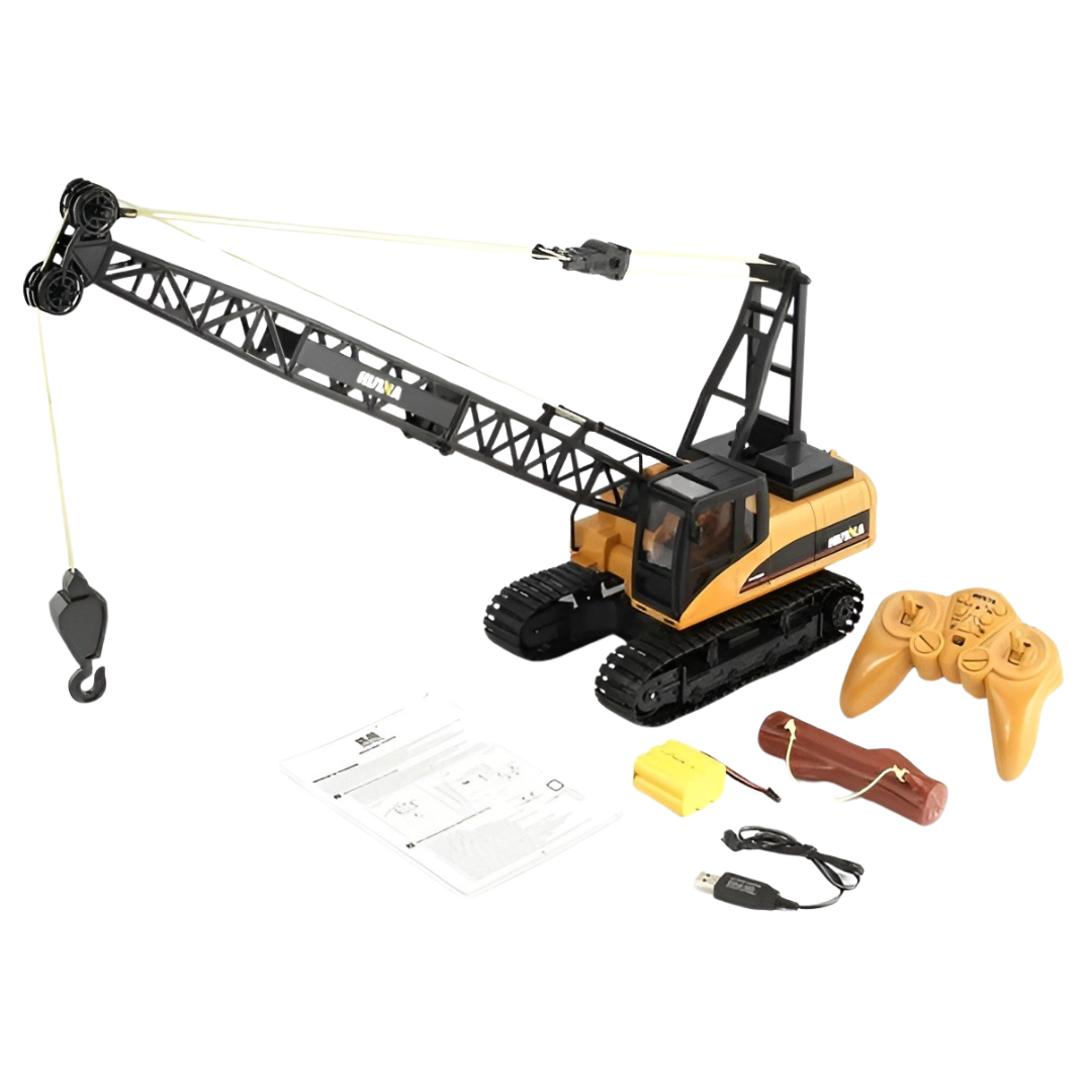 The Huina 1572 RC Crawler Crane offers realistic crane operation with a 15-channel control system, sound and light features, and a sturdy metal hook. Perfect for young enthusiasts and collectors, this 1/14 scale crane delivers immersive construction play right out of the box.