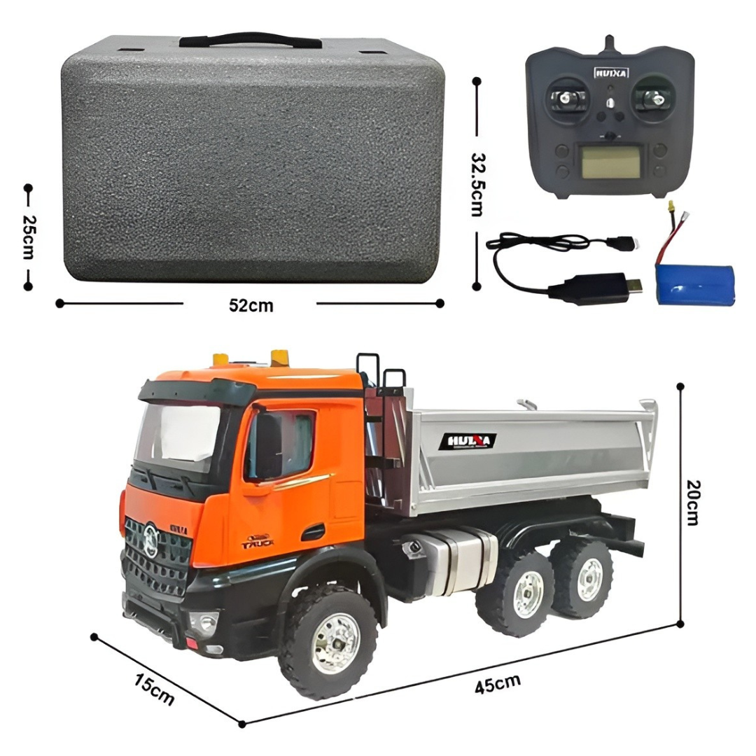 Huina 1598 RTR RC Dump Truck 1/14 Scale ABS & Metal Construction Orange HN1598