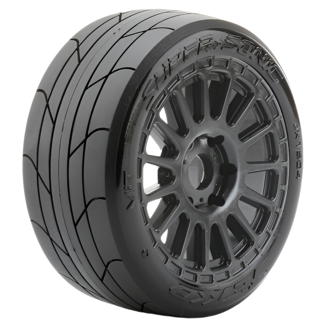 The Jetko 1/10 GT EVOLUTION Tyres with Claw Rim are designed for high-performance RC racing. Featuring a medium soft compound and durable black claw rims, these tyres provide excellent grip and stability on various surfaces, making them ideal for competitive racing.