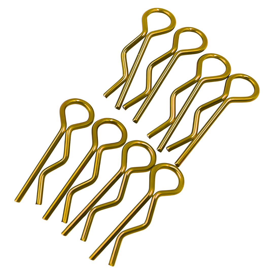 These JPRC 1/10 scale fluro body clips with bent tabs are designed for quick and easy body shell removal. The bright colour enhances visibility during maintenance or at the track.