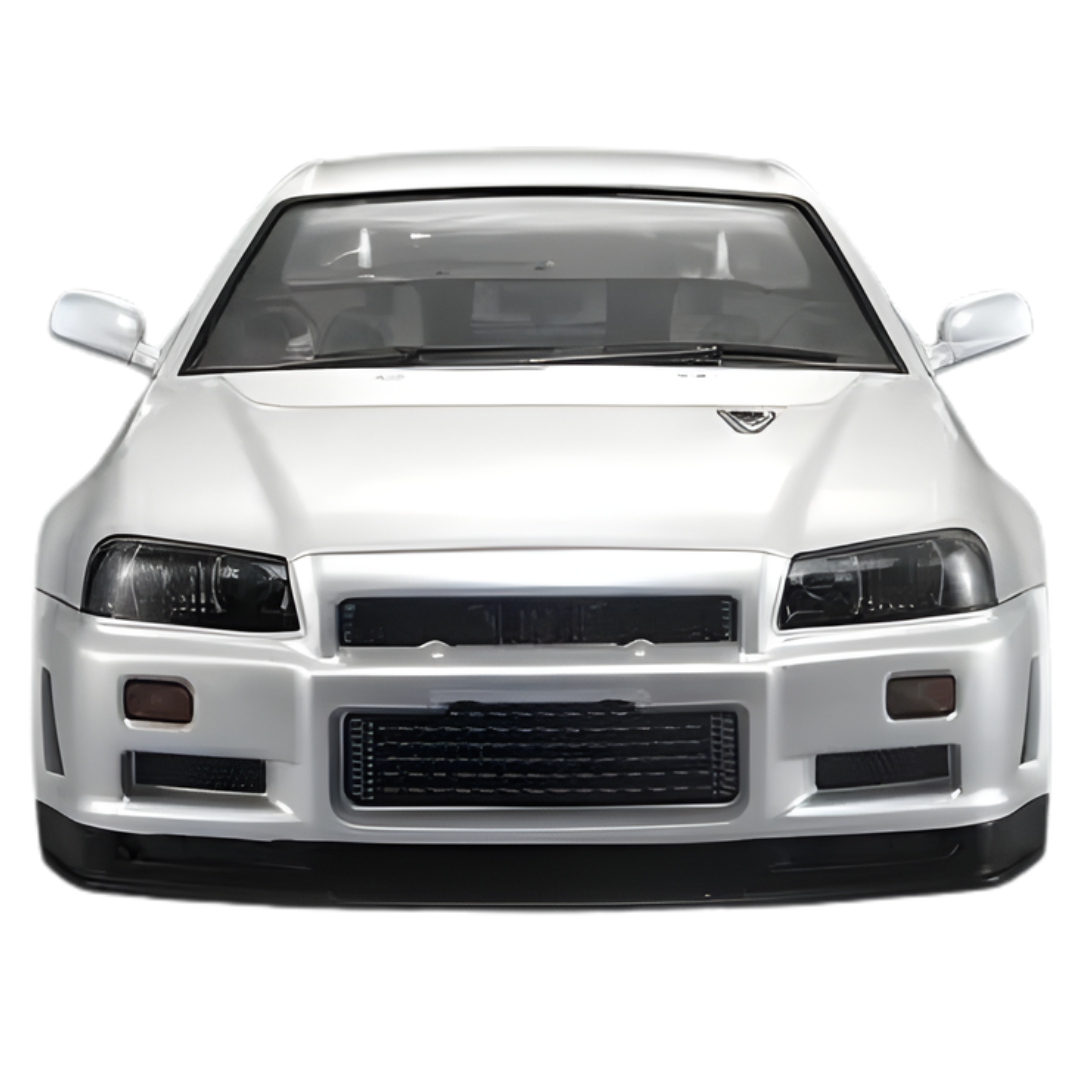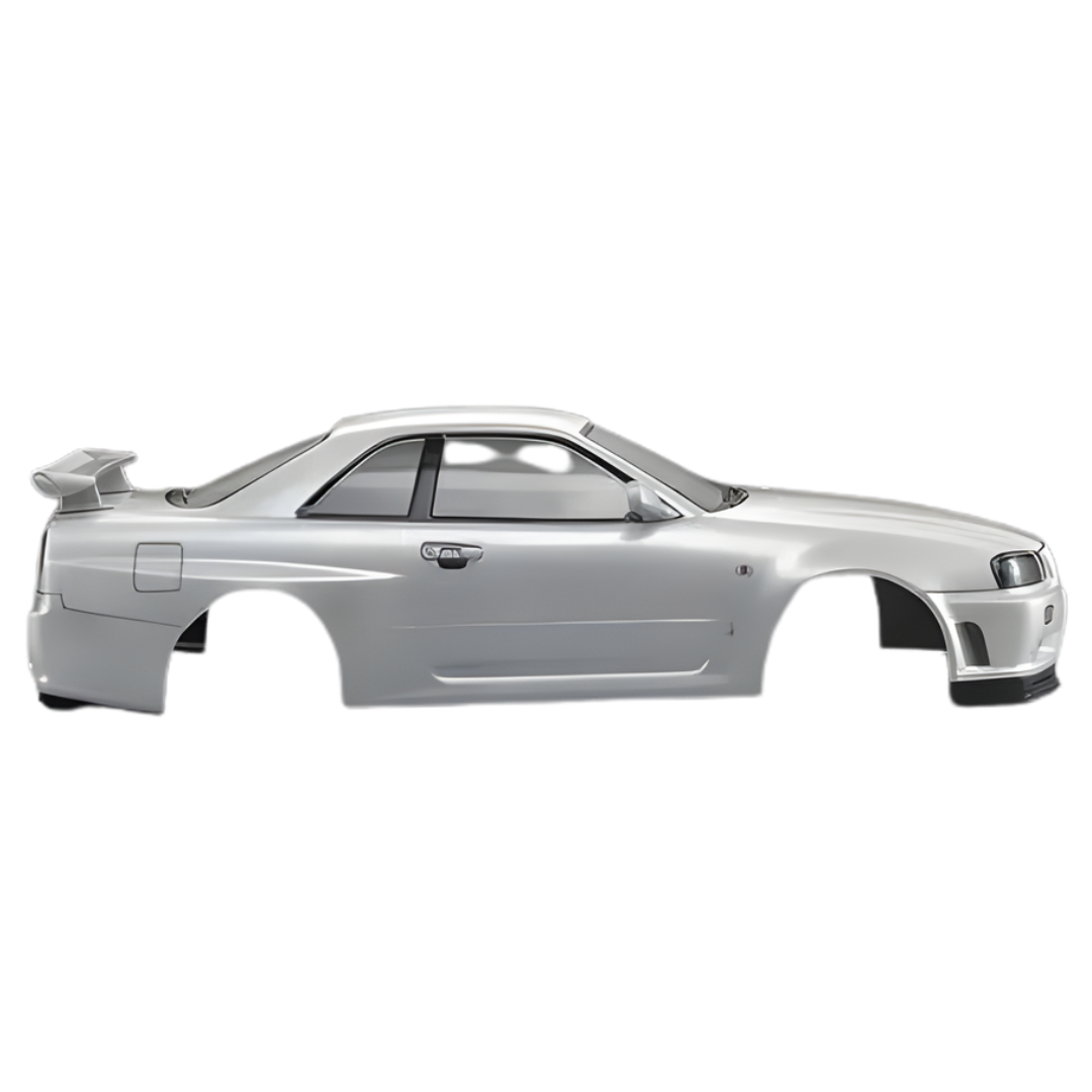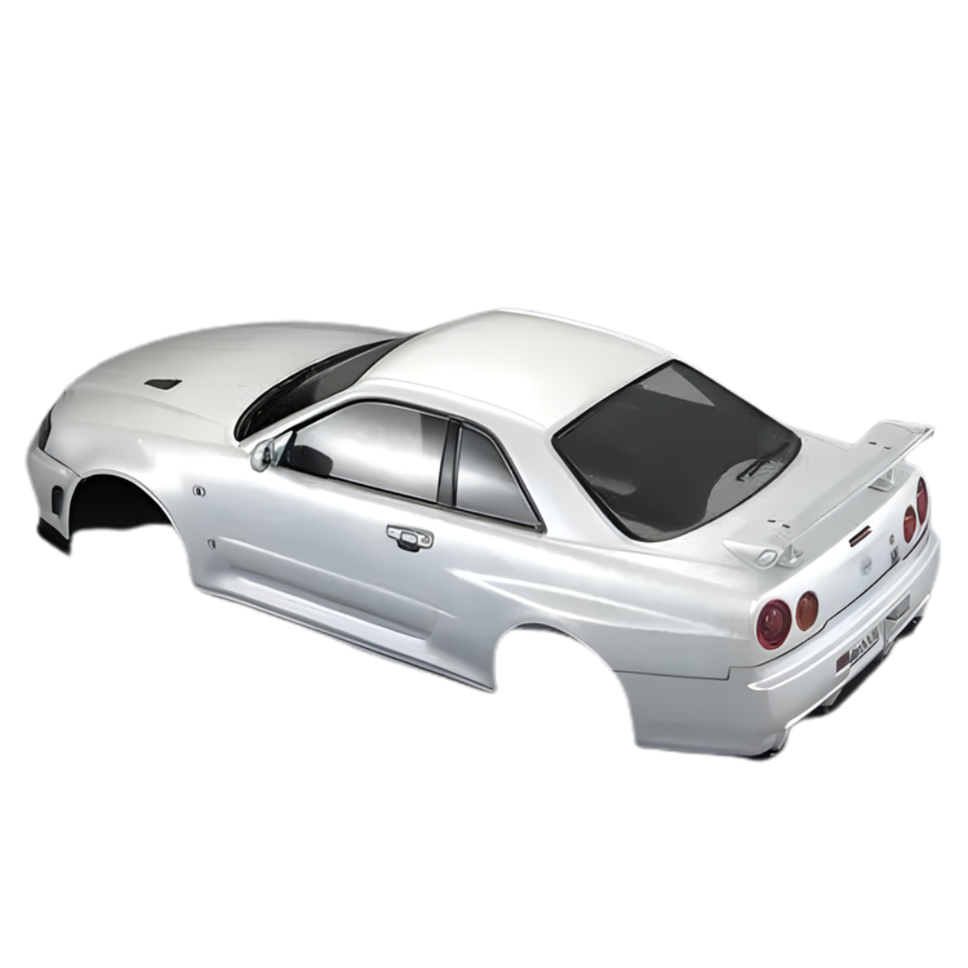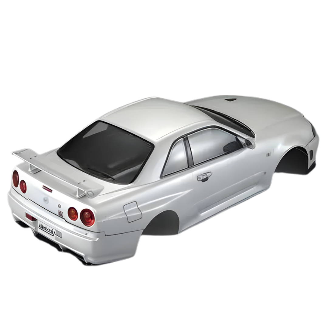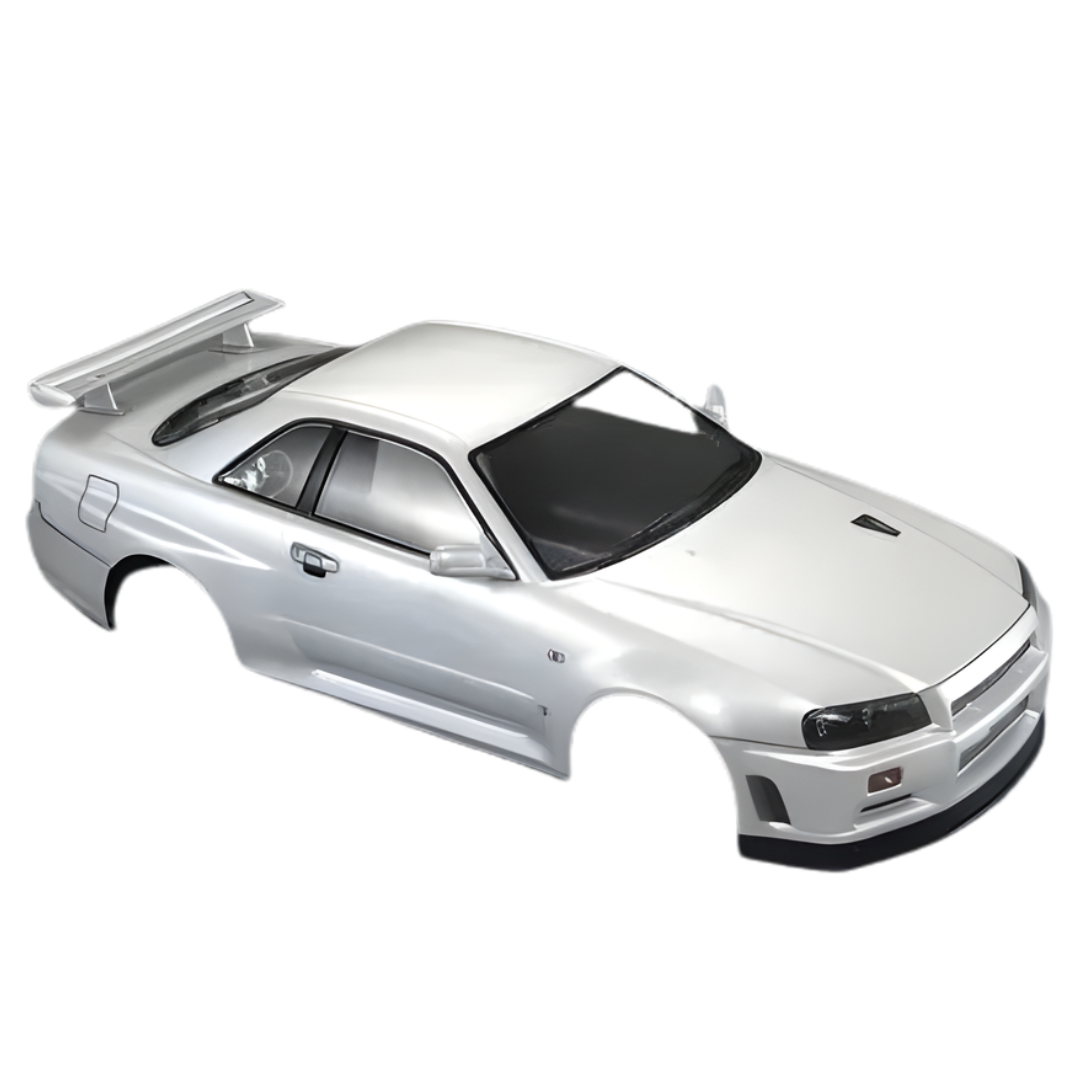 - 1 x Pre-painted and trimmed Nissan Skyline R34 body shell (Pearl White)