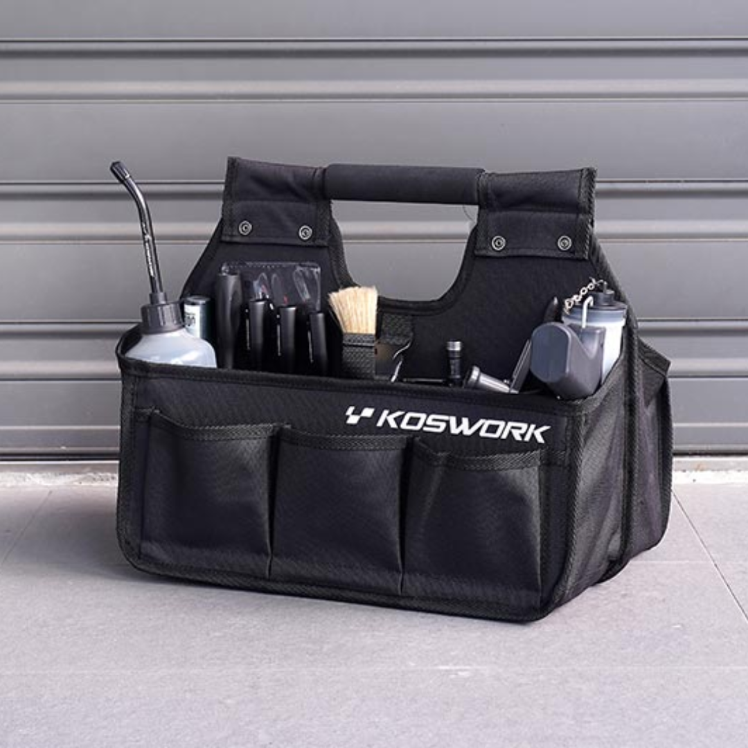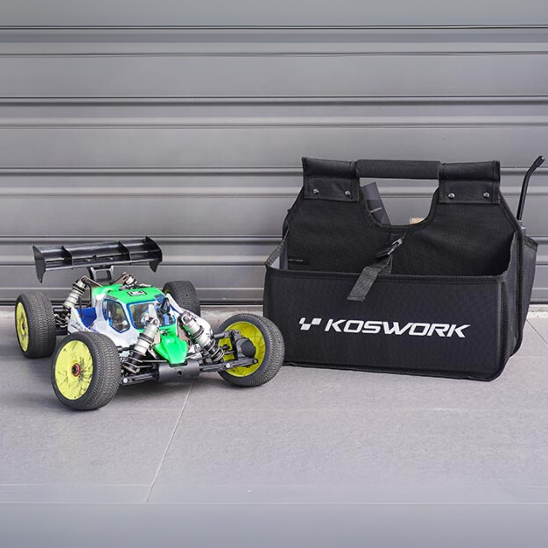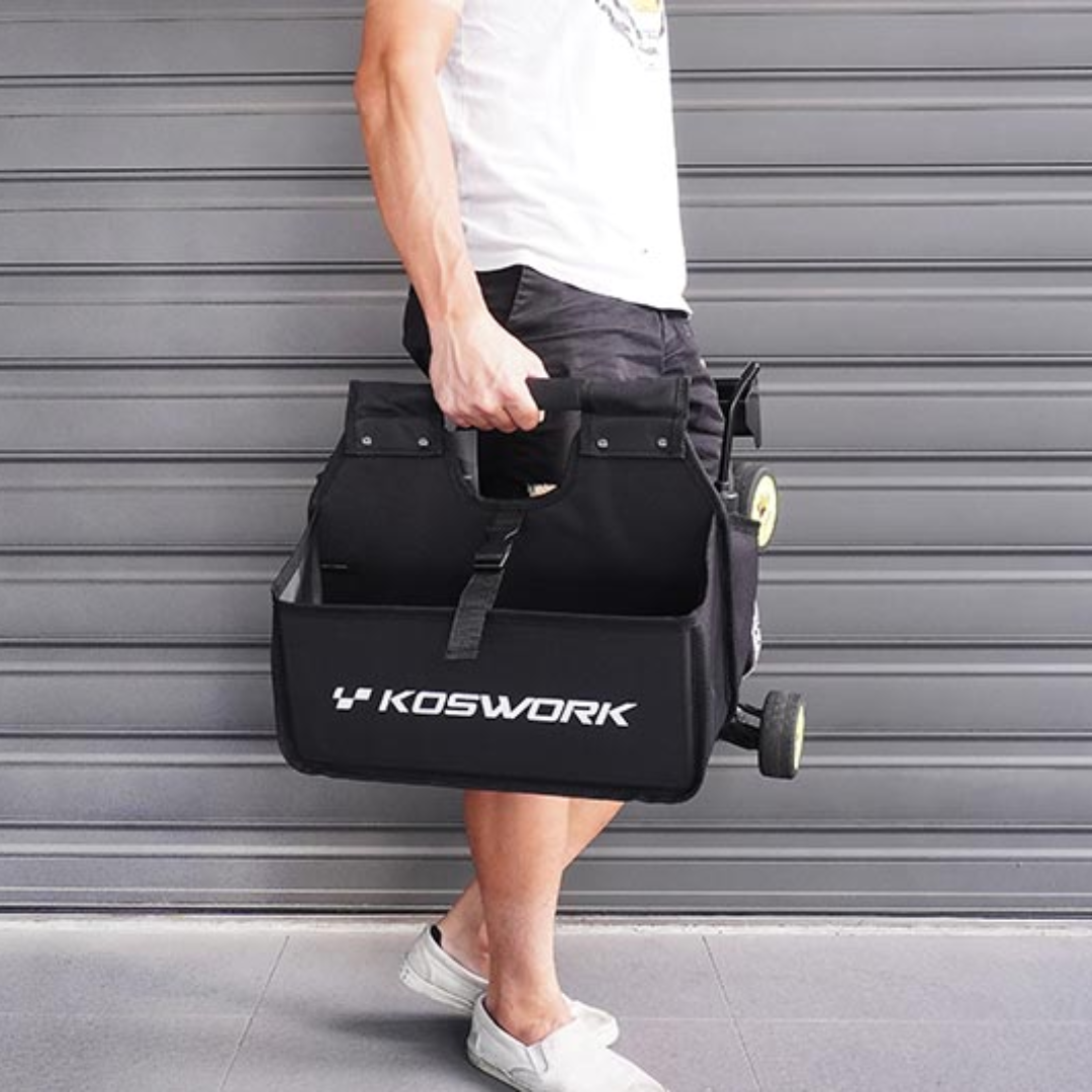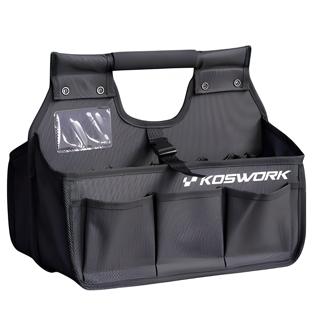 Versatile and durable pit caddy bag designed to carry your RC starter box, tools, and essential accessories. Ideal for keeping your workspace organised at the track or field.