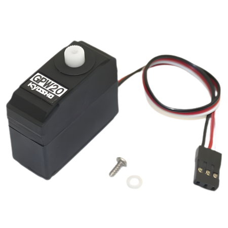 This compact steering servo is designed specifically for Kyosho Hanging On Racer models, providing precise steering control in a ready-to-install package for easy replacement or maintenance.