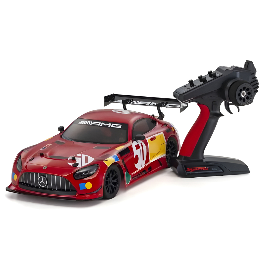 The Kyosho FAZER Mk2 FZ02 Mercedes-AMG GT3 50 Years Legend of Spa offers a perfect blend of scale realism and high-performance handling. Featuring a durable 4WD shaft drive chassis, oil shocks, and a beautifully detailed Ultra Scale body, this Readyset package delivers realistic R/C driving straight out of the box.