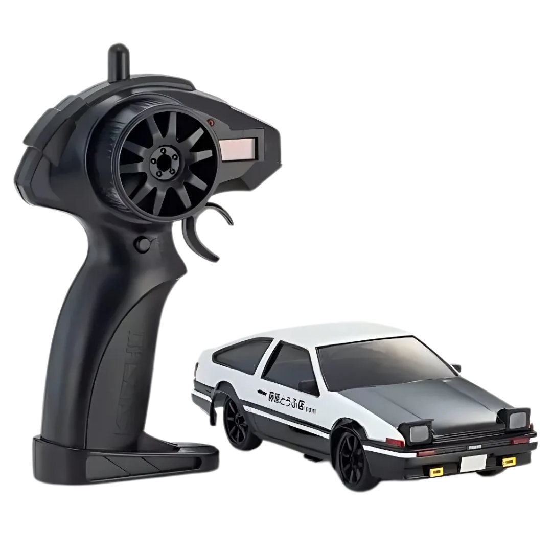 The Kyosho FIRST Mini-Z Trueno AE86 is a beginner-friendly 1/28 scale RC car designed for casual driving and realistic control. With its detailed body, dual speed modes, and digital controller with stopwatch, it delivers exciting home racing experiences straight out of the box.