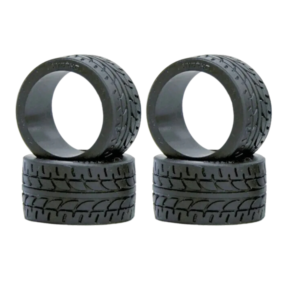 This set of four 30 Shore radial tyres from Kyosho is designed for the Mini-Z Racer series. Engineered with a directional tread pattern, they offer excellent grip on urethane and carpet surfaces and are ideal for tuning traction based on track conditions.