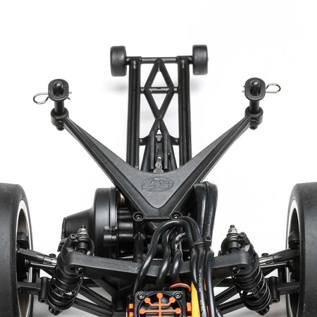 Setting the standard in the industry for years, the Losi 1969 Camaro Drag Car is the most competitive No Prep Drag Racing Ready-to-Run. With the popularity of No Prep Drag Racing exploding, Losi has once again taken it to the next level with a truly innovative design and the quality workmanship drivers expect. The 69 Camaro has been carefully crafted to give a classic look while still fitting into the rules and regulations set by the No-Prep Drag Racing scene. It has all the advantages of an aluminium chassis such as electronics protection, side impact guards, and a clean wire management system with plenty of 22S option parts. It's designed with racers in mind with many outstanding features including officially licensed Mickey Thompson tires, limited travel oil filled front and rear shocks, low center of gravity rear shock tower, extended body mounts, optional heavy duty sway bar, adjustable weight front bumper, elevated transmission, adjustable turnbuckles, and a fully adjustable wheelie bar. You get an all-metal gear transmission for concrete dependability along with a Spektrum SLT3 transmitter and dual protocol receiver, Spektrum Firma 100 amp Smart ESC, and Spektrum Firma 6500kv brushless motor. From its unmistakable body, to rapid handling, everything about the Losi 1969 Camaro Drag Car is ready to provide racing thrills like nothing else.