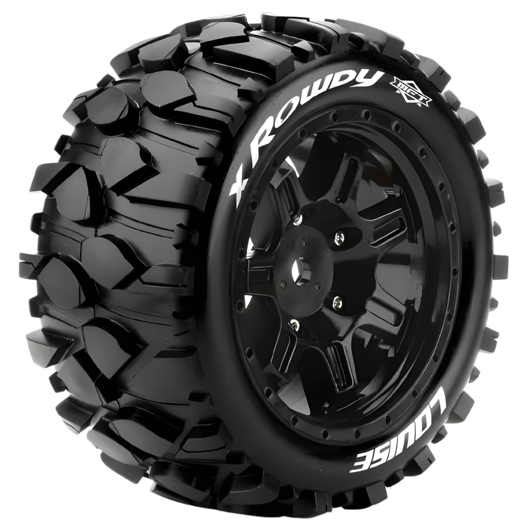 Louise 5.5" X-Rowdy X-MAXX Tyres on Black Spoked Rims Glued Wheels 2Pcs LT-3351B