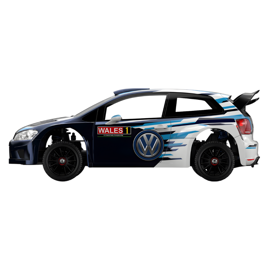 This 1/10 scale rally car delivers high speed brushless performance with authentic Volkswagen Polo R WRC styling, combining advanced electronics, a rigid aluminium chassis, and a capable 4WD drivetrain for thrilling rally action straight out of the box.