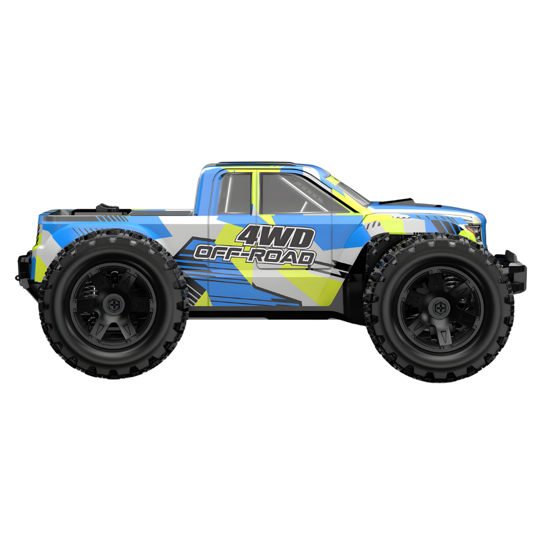 This 1/18 scale HyperGo truck delivers fast paced fun with simple brushed power, responsive handling, and durable construction, making it a great choice for beginners and casual drivers who want reliable performance on a variety of surfaces.