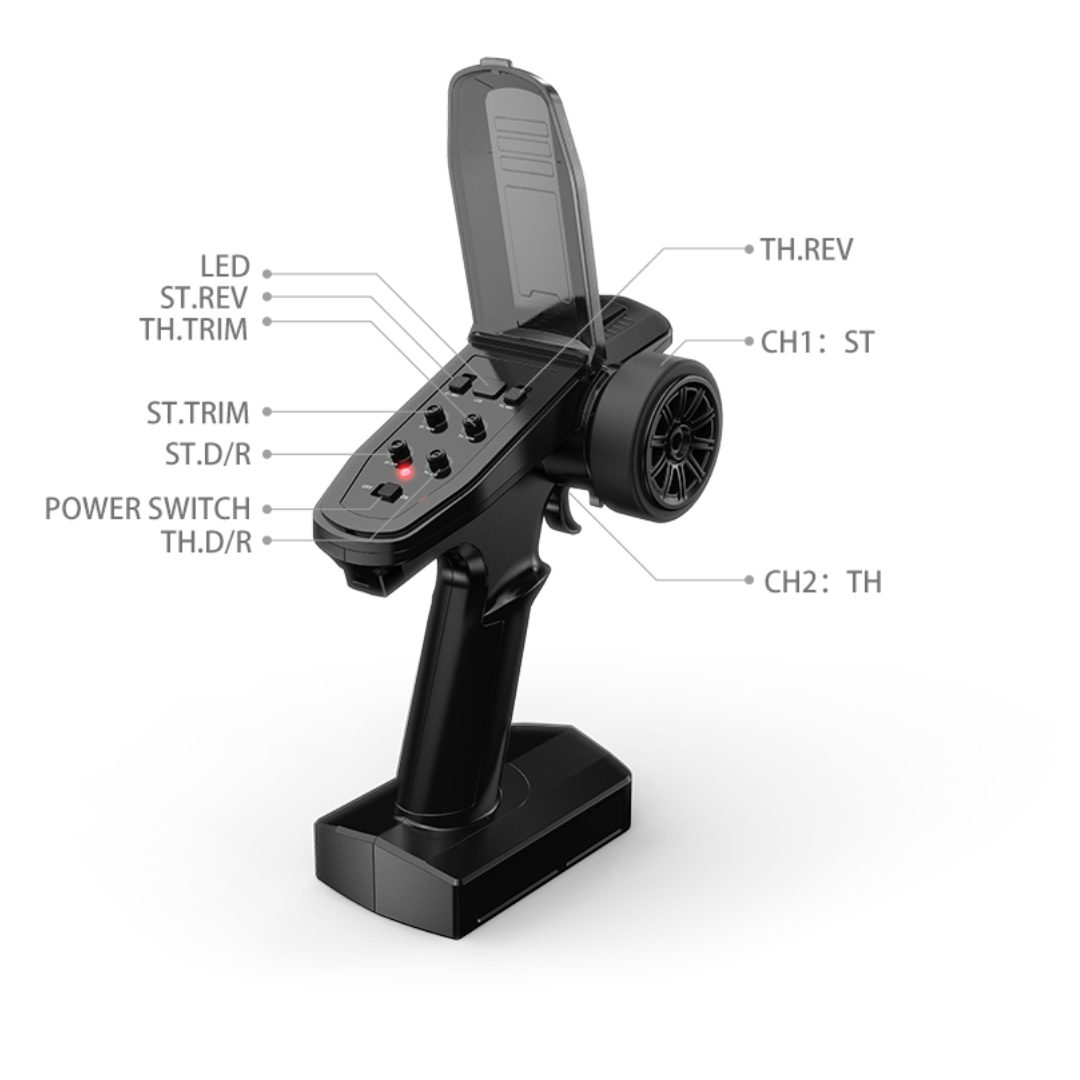 - Transmitter: 2.4GHz 3-channel (requires 4x AA batteries, not included)