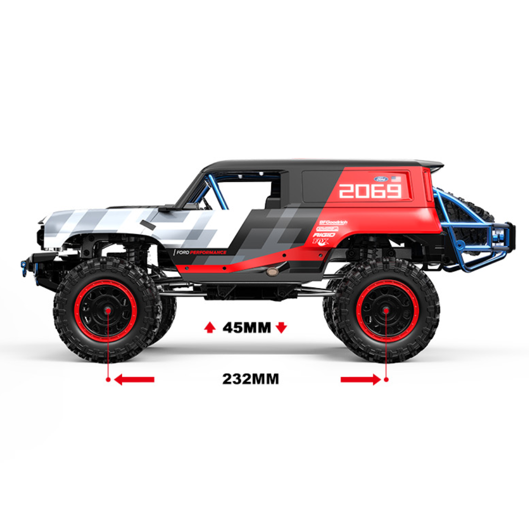 The MJX Hyper Go Ford Bronco R 1/12 scale RC Crawler blends scale realism with brushless power and durable construction. Equipped with a high-performance 2852 motor and full metal drivetrain components, it’s built to handle rough terrain with stability, speed, and precision control.