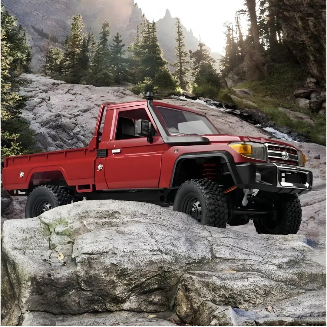 The MN Model Toyota LC79 1/12 scale rock crawler delivers detailed scale realism and capable 4WD performance in a ready-to-run package. Finished in red with functional lighting, this electric crawler is ideal for trail adventures and backyard crawling straight out of the box.